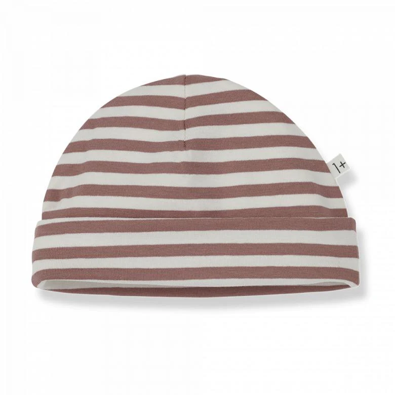 Berretto in cotone leggero con risvolto in fantasia a righe.