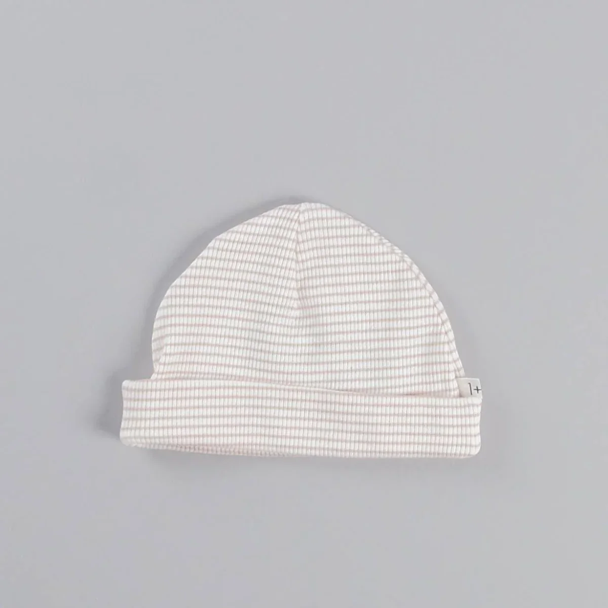 Cappello in tessuto a righe con lavorazione a costine con risvolto.