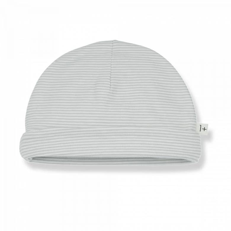 Berretto in cotone leggero con risvolto, fantasia a righine sottili verde salvia.