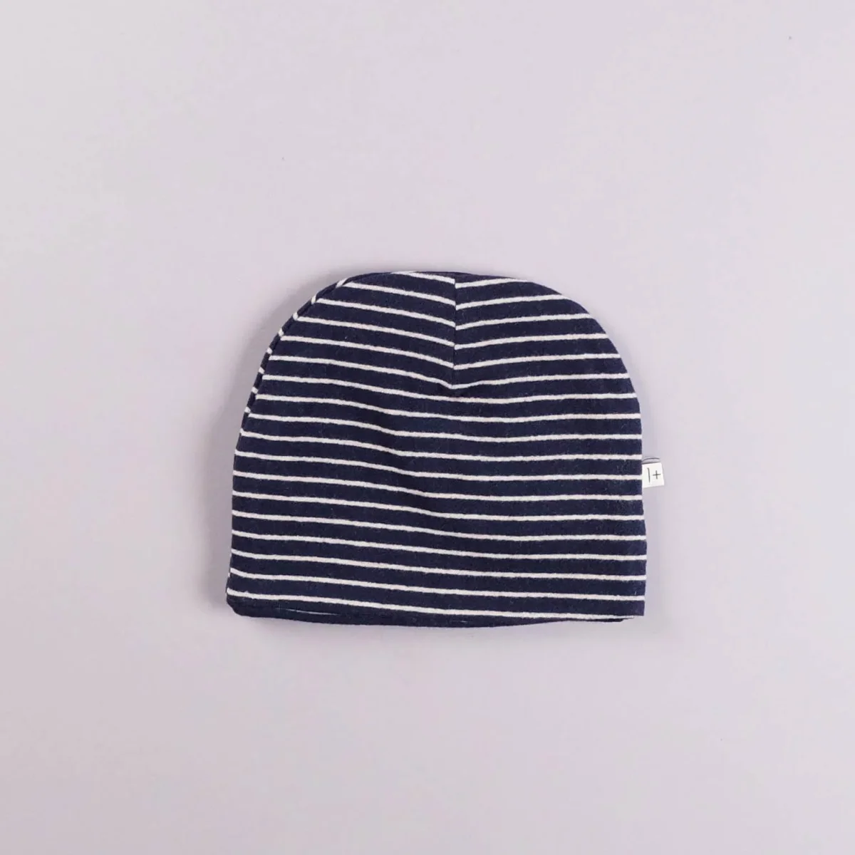 Cappello con fantasia a righe con taglio al vivo.Composizione: 47% cotone, 47% acrilico, 6% elastan
