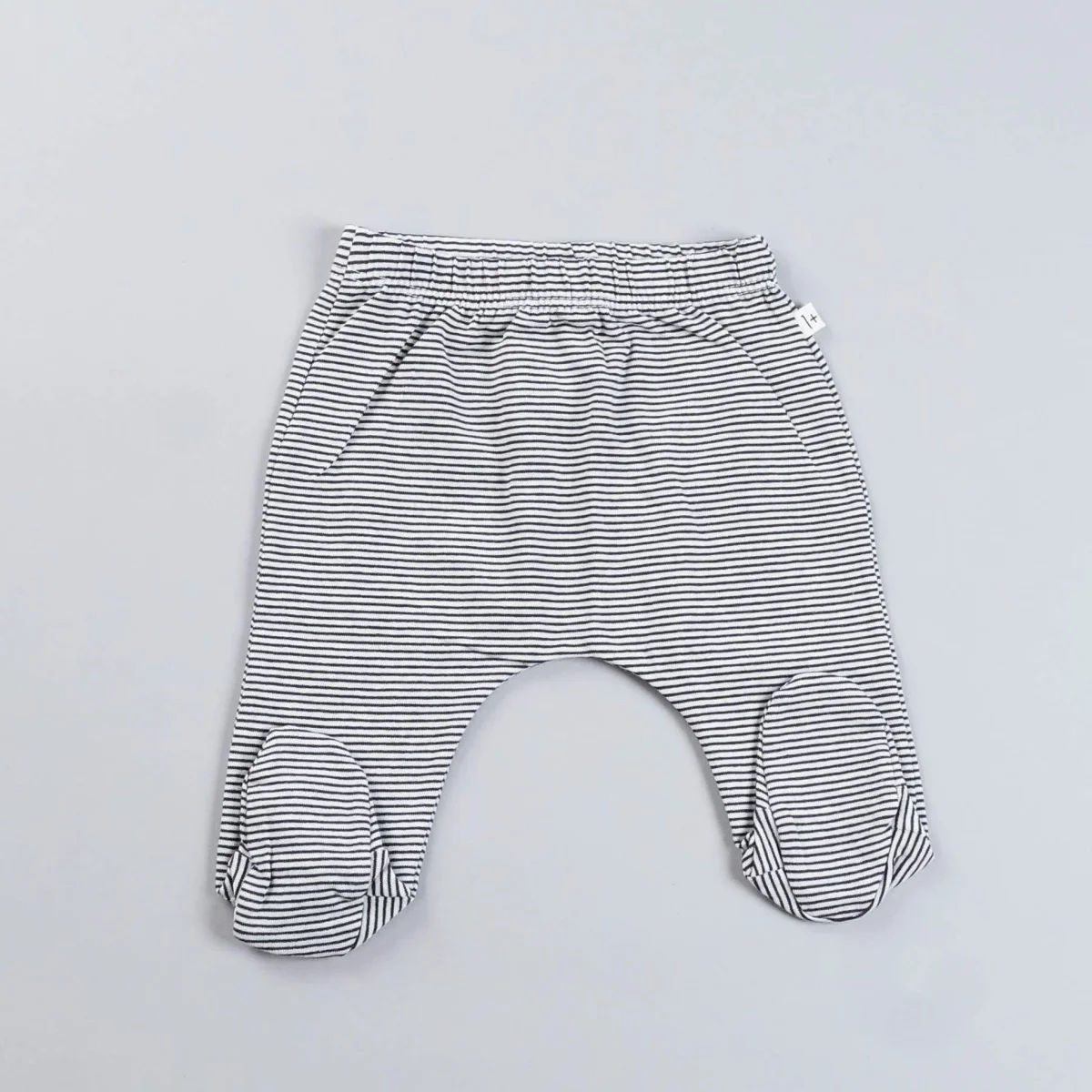 Pantaloni con piedino righine antracite ed elastico in vita. Composizione: 96% cotone, 4% elastan (40% recycled cotton)