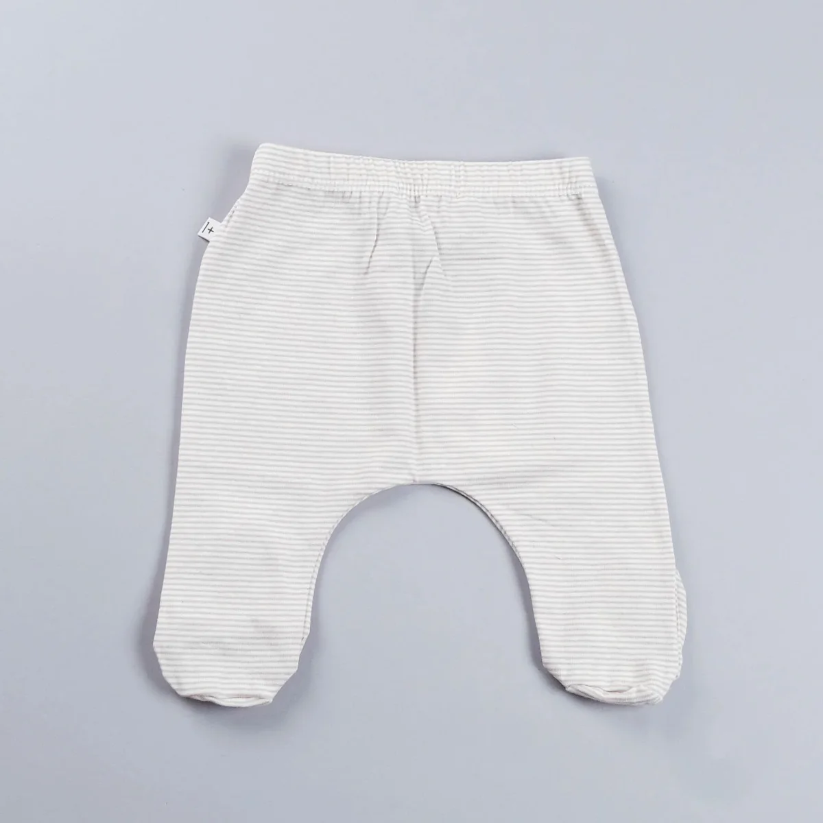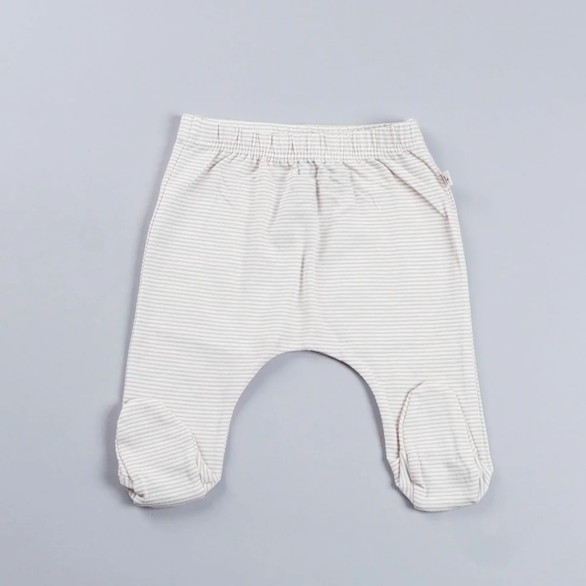 Pantaloni con piedino righine beige ed elastico in vita. Composizione: 96% cotone, 4% elastan (40% recycled cotton)