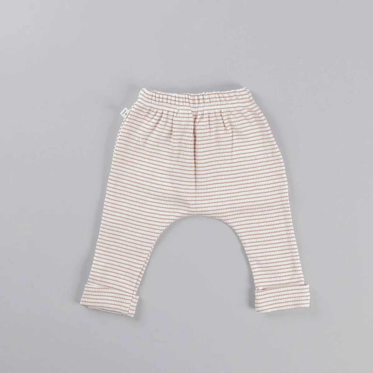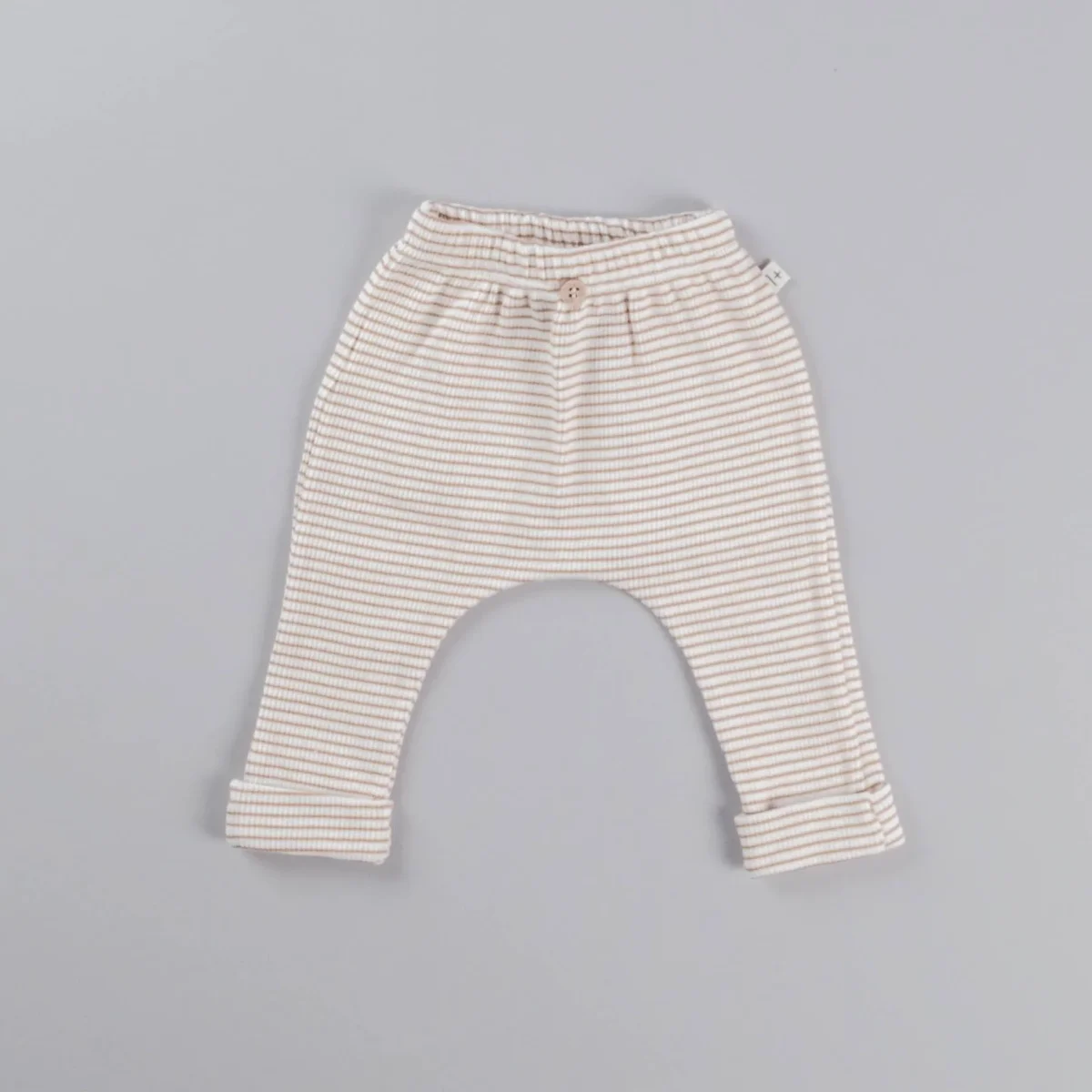 Leggings con risvolto a fondo gamba in tessuto a costine, elastico in vita e bottoncino in legno decorativo.