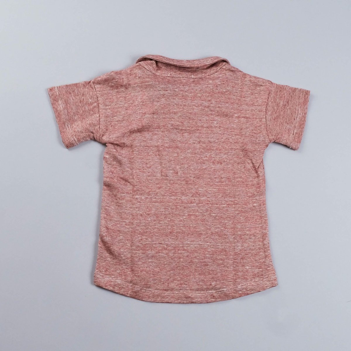Polo a manica corta in puro lino con fantasia a righine rosse.