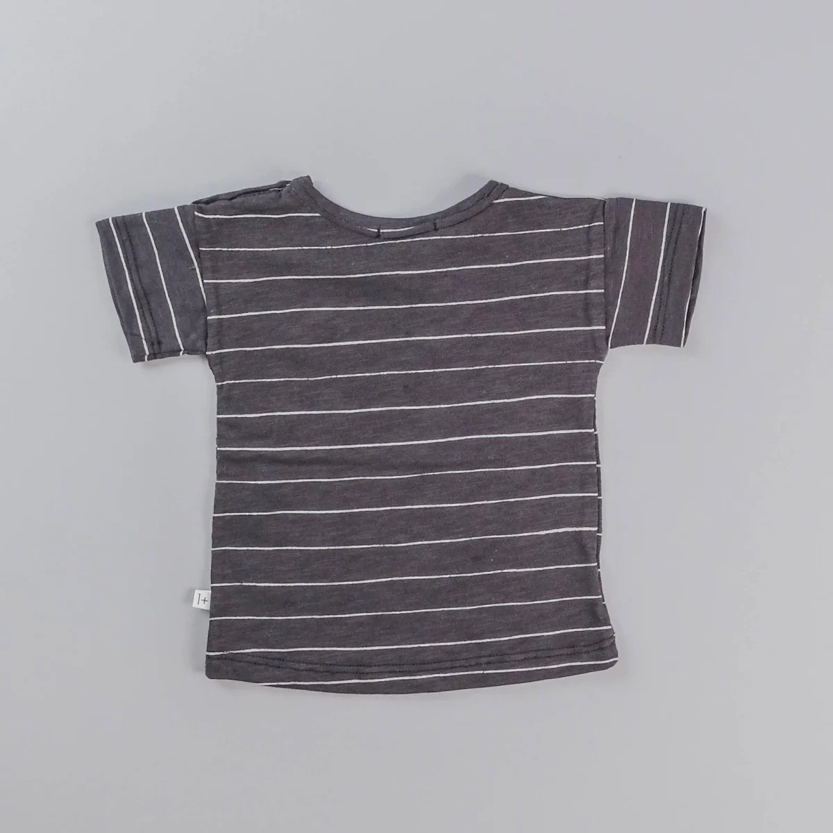 T-shirt a manica corta con fantasia a righe, apertura sulla spalla tramite bottoncino in legno. Composizione: 100% cotone