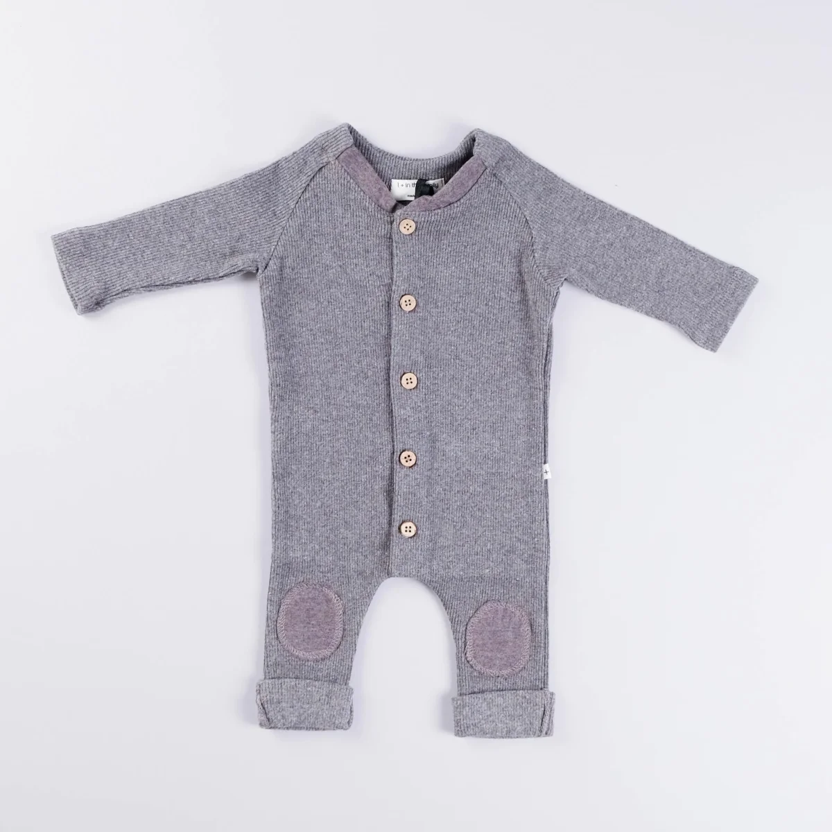 Tutina con manica lunga, apertura frontale tramite bottoncini in legno, toppa decorativa sulle ginocchia, risvolto a fondo gamba.Composizione: 48% cotone, 48% acrilico, 4% elastan