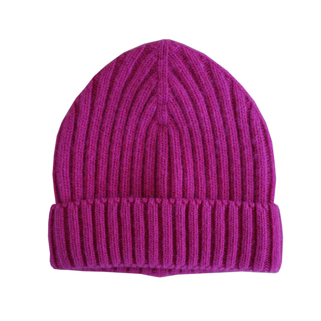 Berretto a coste con risvolto. Composizione: 33% lana, 33% viscosa, 24% poliammide, 10% cashmere MADE IN ITALY