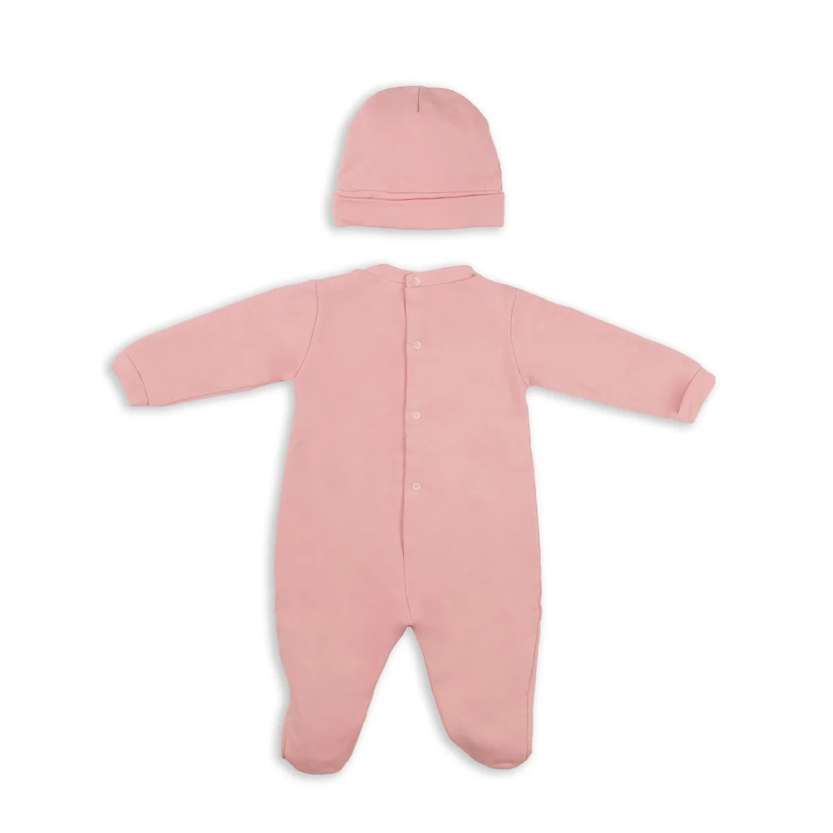 Set due pezzi composto da tutina a manica lunga con piedini e cappello abbinato in cotone felpato. I capi sono realizzati totalmente in Italia, con i materiali piรน pregiati e tinti in capo. Le tinture sono stabilizzate e idonee al contatto con la pelle dei neonati. Apertura tramite bottoncini a pressione sul retro e sotto, per facilitare il cambio pannolino. Logo ricamato.