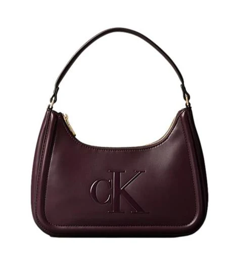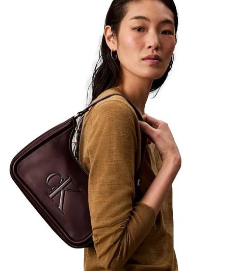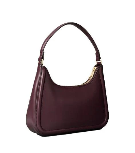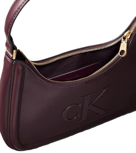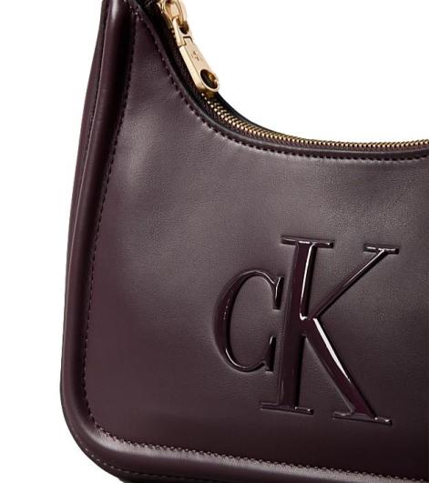Borsa a spalla da donna in ecopelle bordeaux, con chiusura a zip e spallina non regolabile, logo monogramma lucido sul davanti.