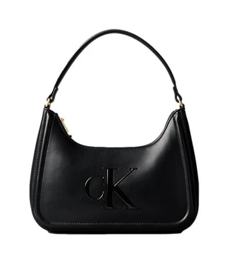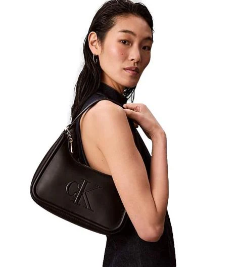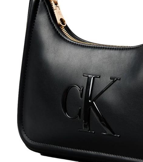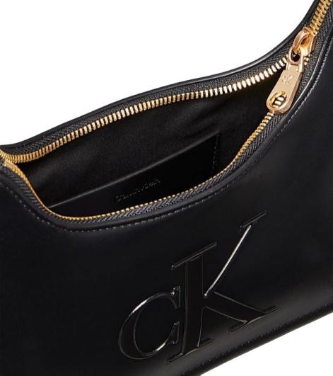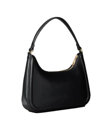 Borsa a spalla da donna in ecopelle nera, con chiusura a zip e spallina non regolabile, logo monogramma lucido sul davanti.