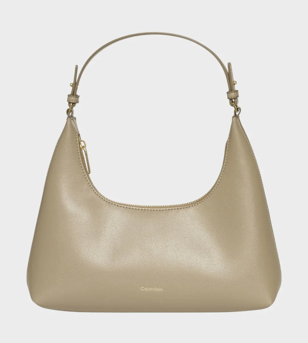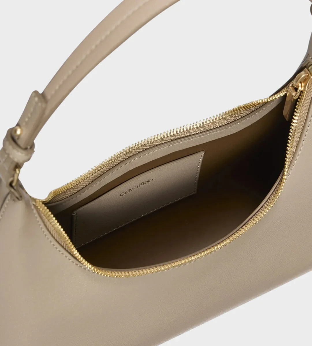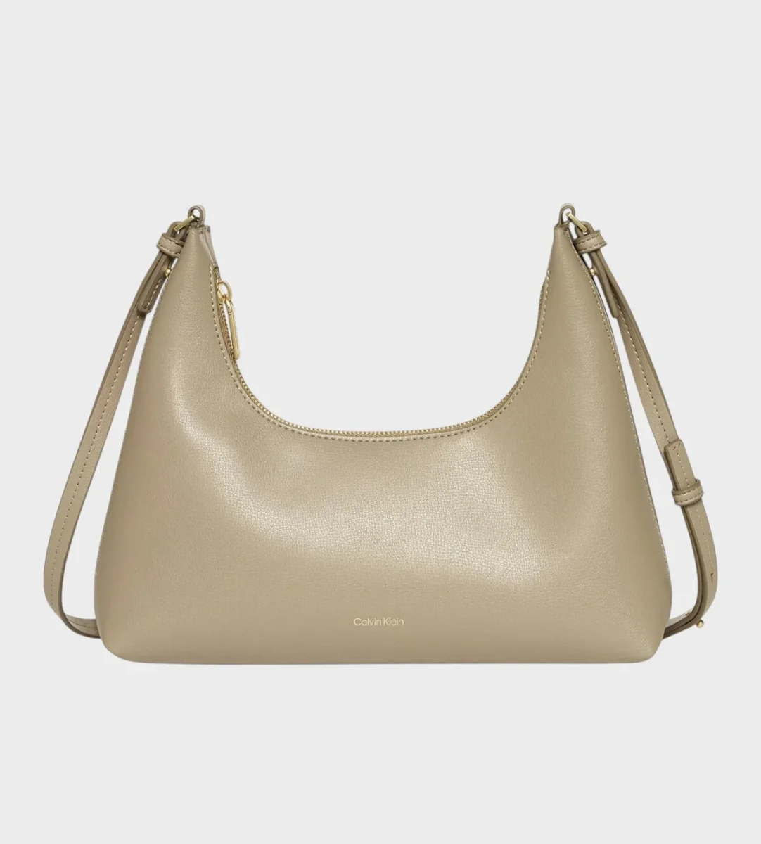 Borsa donna beige in ecopelle dal design elegante, dotata di uno scomparto principale chiuso da cerniera e tasca interna portacarte e tracolla fissa.