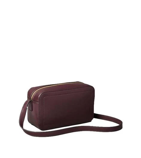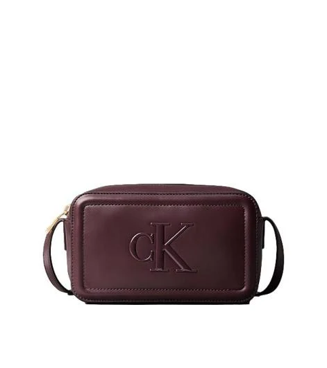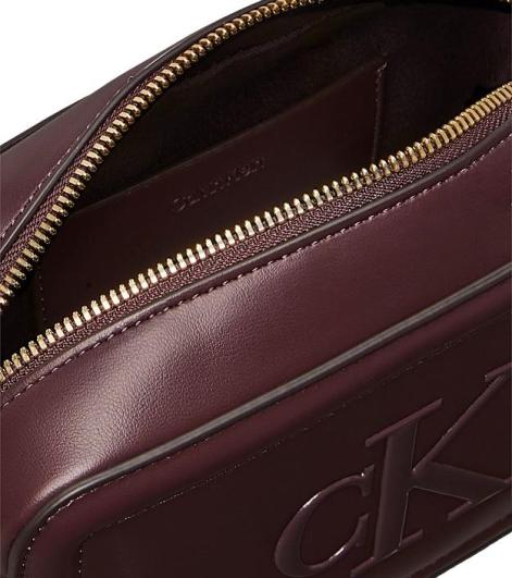Borsa donna bordeaux in ecopelle, con chiusura zip e tracolla regolabile, logo monogramma lucido sul davanti.