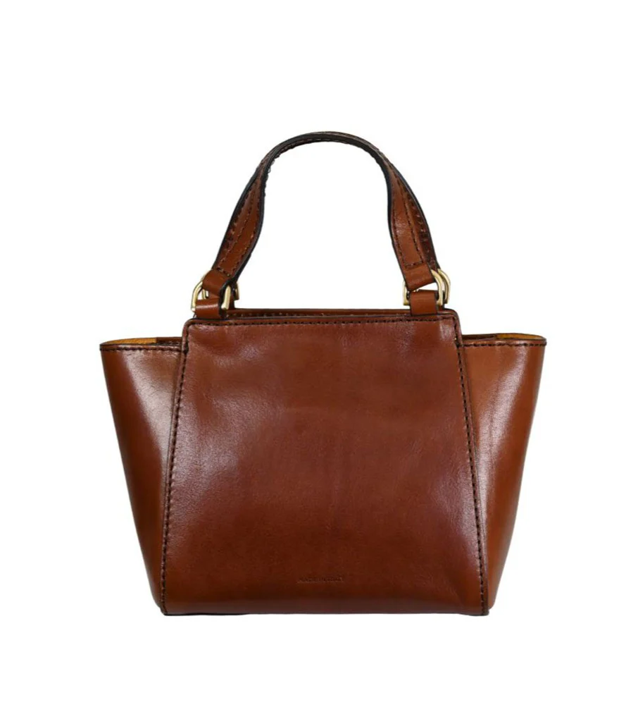 Borsa a mano da donna marrone, con chiusura zip e tracolla regolabile e sganciabile.