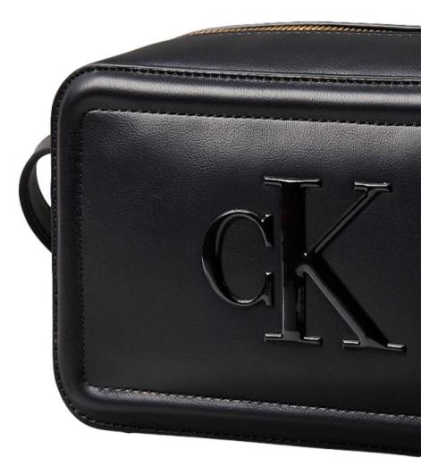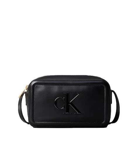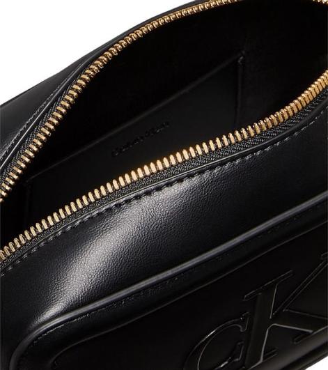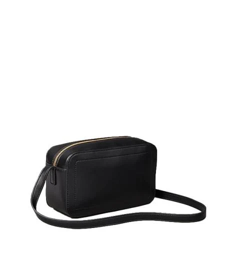 Borsa donna nera in ecopelle, con chiusura zip e tracolla regolabile, logo monogramma lucido sul davanti.