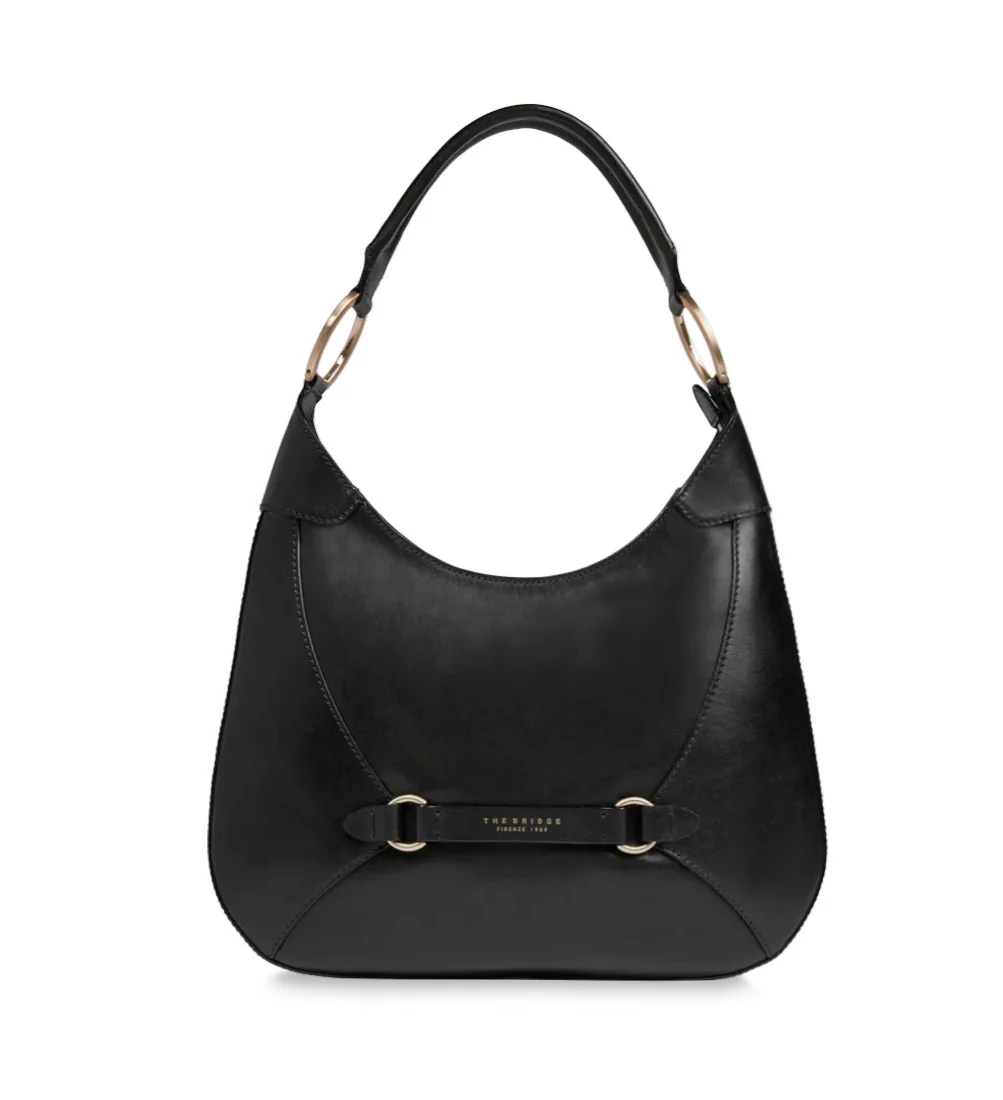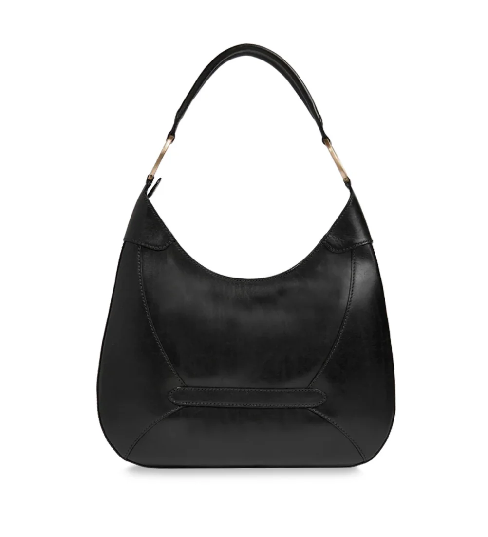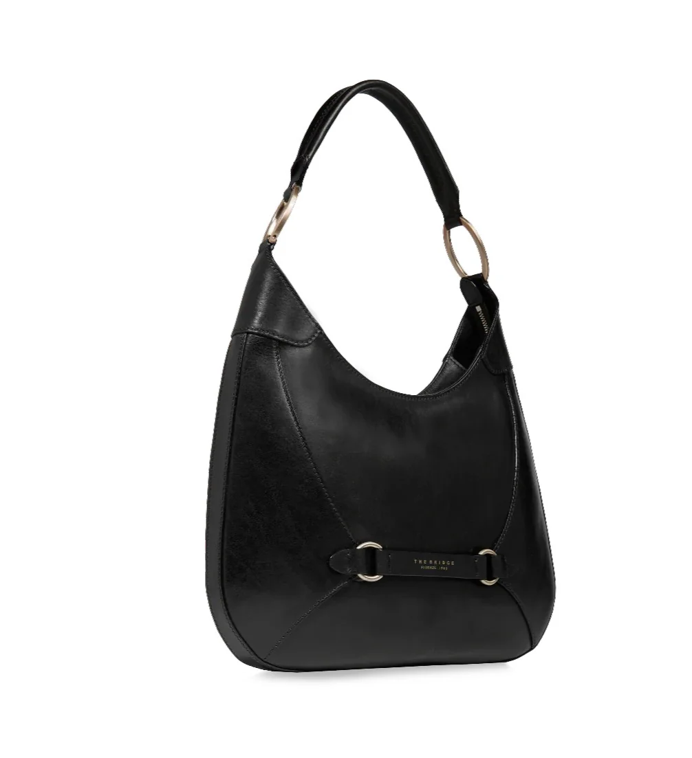 Borsa donna nera realizzata in pelle bovina, modello hobo con chiusura a zip, strutturata e raffinata.