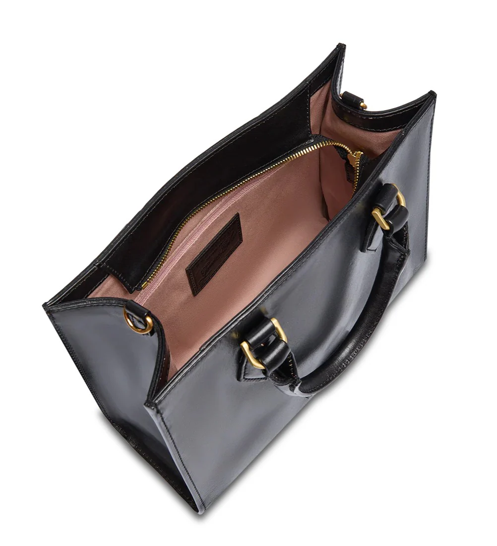 Borsa a mano donna nera realizzata in pelle con tracolla removibile.