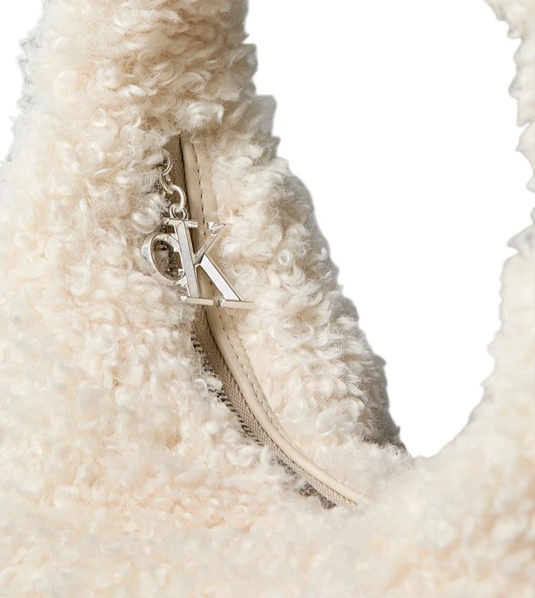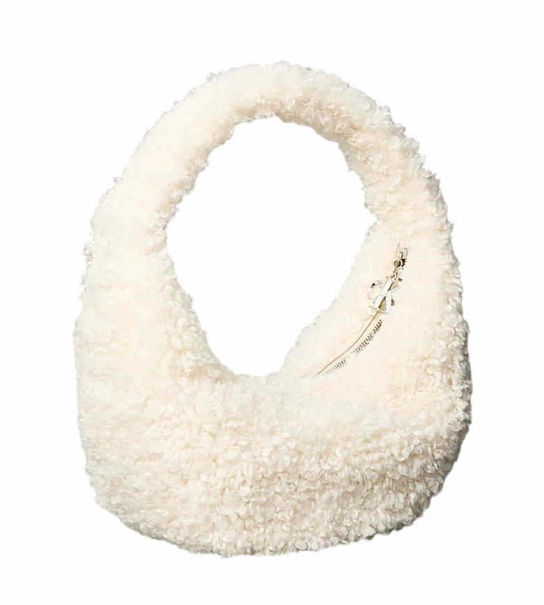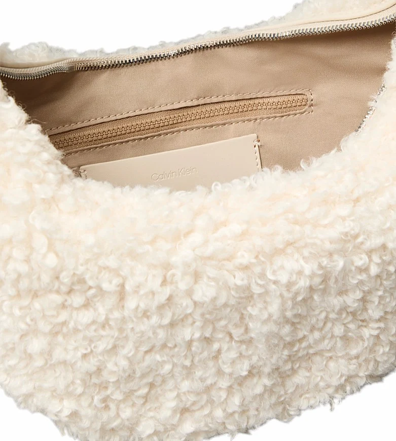 Borsa donna panna in sherpa di poliestere con zip superiore, con tasca interna con zip e rivetto con logo monogramma.