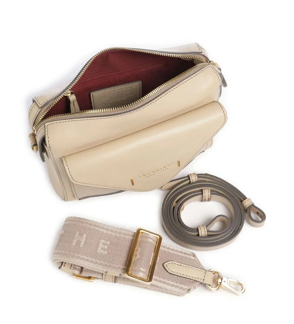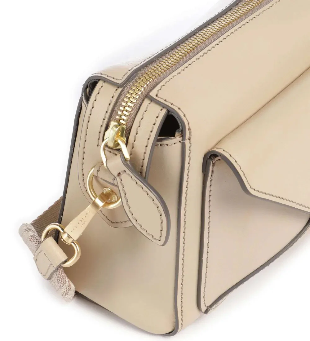 Borsa donna a tracolla color sabbia, realizzata in pregiata pelle naturale, dotata di tracolla regolabile e una tracolla supplementare, chiusura con zip e tasca frontale con bottone magnetico. Internamente รจ foderata in cotone con scomparto principale, tasca interna e tasca con zip.