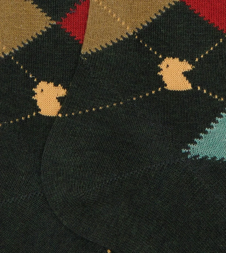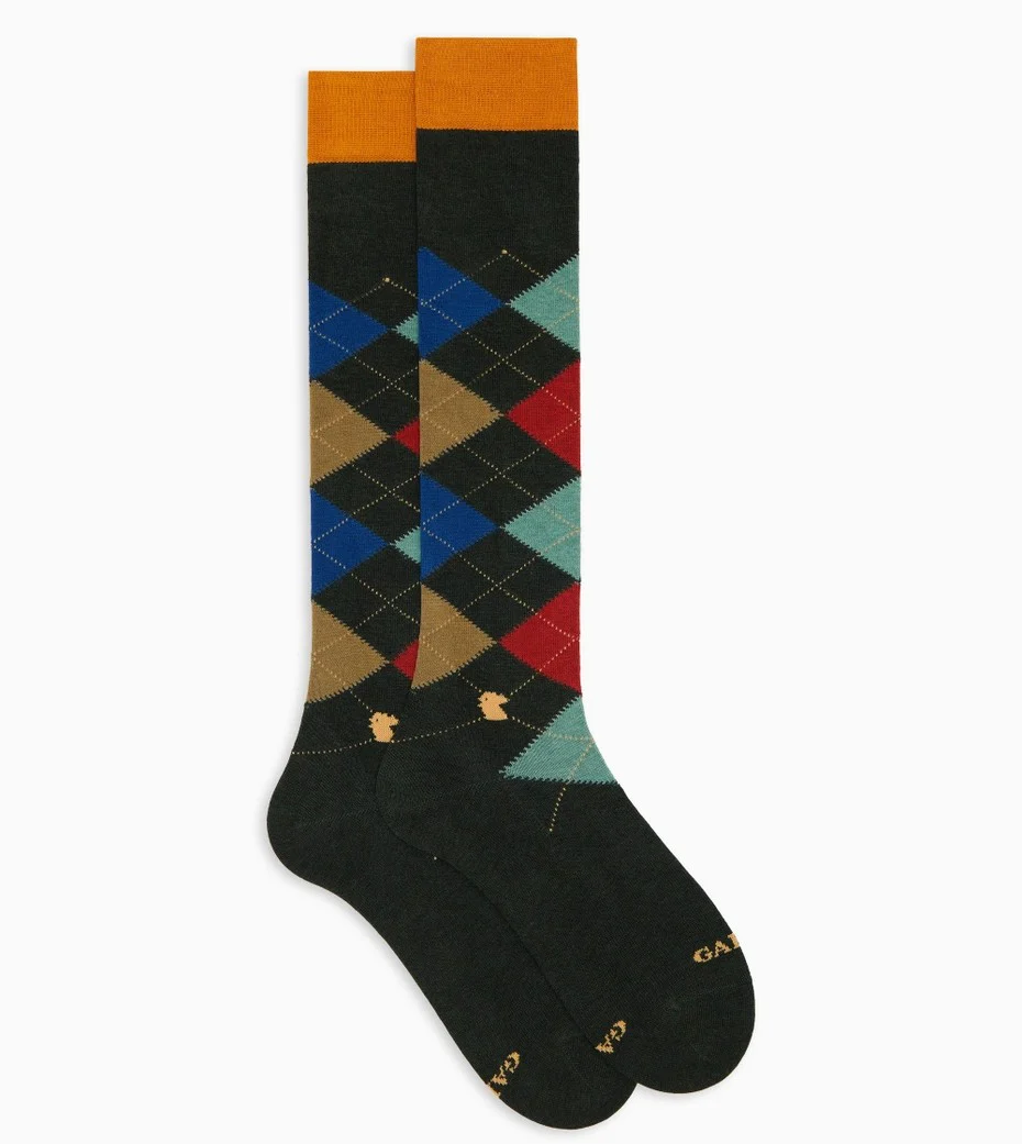 Calze lunghe uomo verde fantasia intarsio in cotone