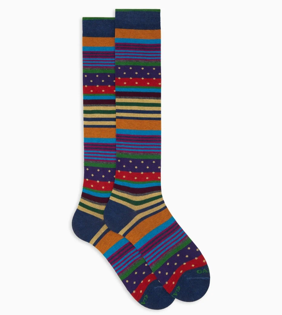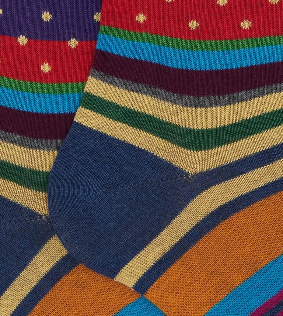 Calze da uomo realizzate in Italia in cotone. Morbidissimi, sono pensati per chi รจ esuberante e non rinuncia a dettagli di stile. Le divertenti righe, i pois e le sfumature del viola li rendono originali ma riconoscibili. Ideali per look casual, stravaganti o anche formali.