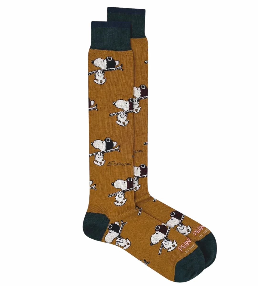 Calze uomo giallo scuro realizzate in misto cotone, con simpatica stampa Snoopy.
