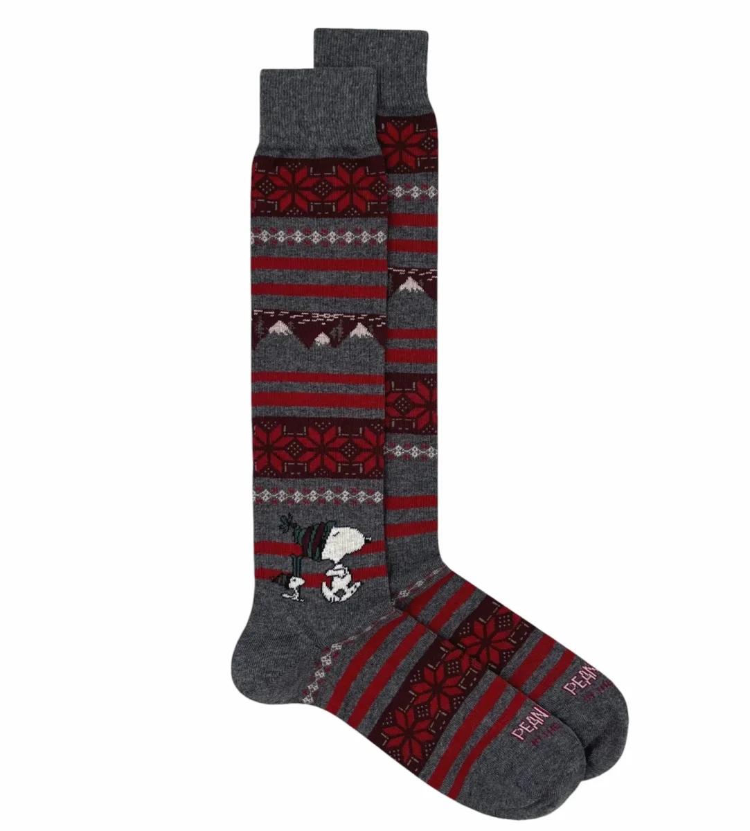 Calze uomo grigio e rosso realizzate in misto cotone, con stampa natalizia.