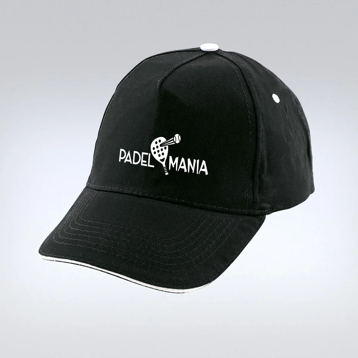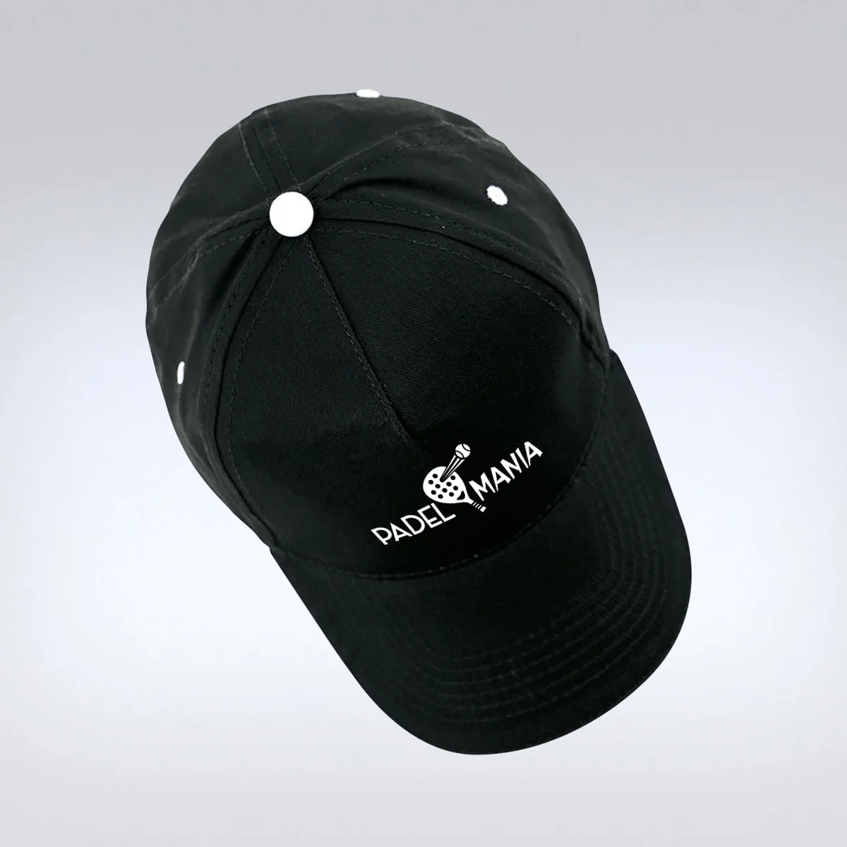 Cappellino 5 pannelli in cotone. Visiera precurvata con sandwich a contrasto. Asole ricamate coordinate con il sandwich. Chiusura in velcro regolabile. Colore: Nero/Bianco