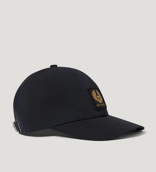 Cappellino blu navy in twill di cotone dalla struttura morbida, con cinturino regolabile in tessuto sul retro. Modello dalle linee pulite con visiera ricurva con cuciture multiple e mostrina con la fenice tono su tono e bordo ricamato sul davanti.