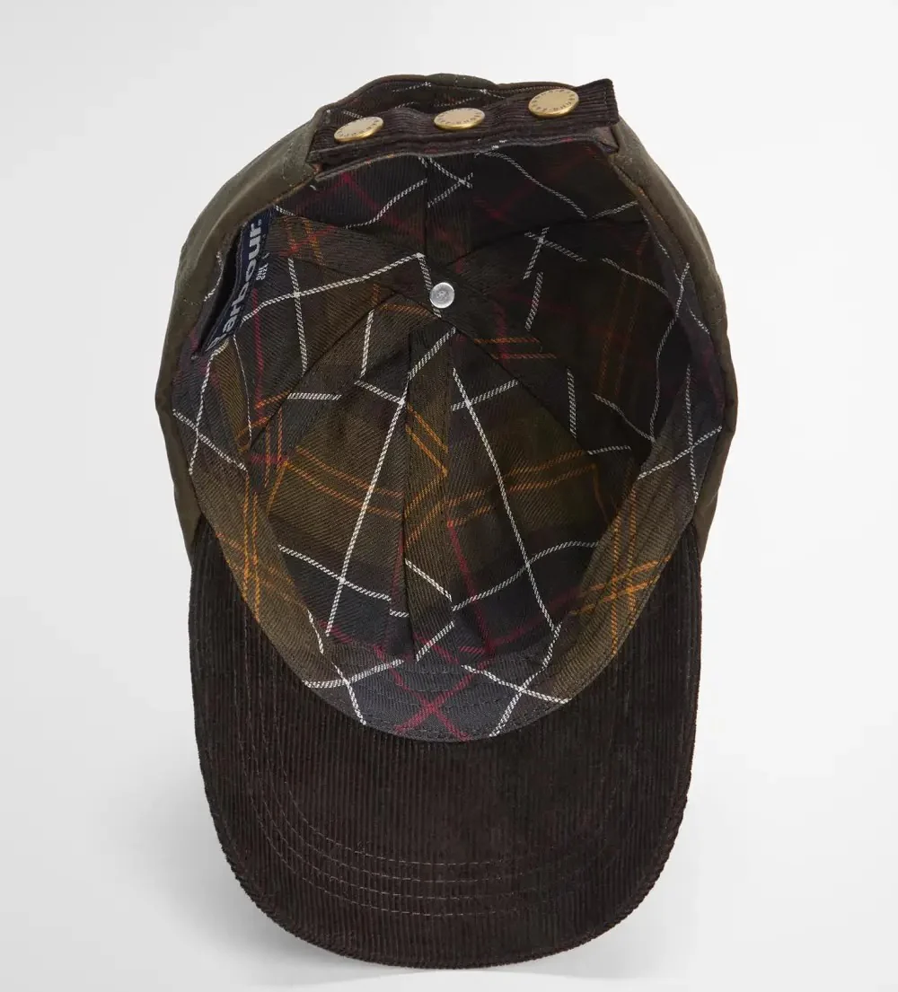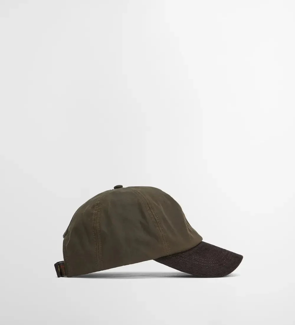 Cappellino uomo verde oliva in cotone cerato, ispirato ad una delle giacche cerate piรน iconiche, รจ lโaccessorio perfetto da abbinare ai capispalla della collezione. Realizzato con lo stesso tessuto di cotone cerato del capospalla originale e impreziosito da una visiera preformata in velluto a coste, questo modello rende omaggio al nostro heritage con un tocco di modernitร . Logo ricamato a sinistra, bottoni a pressione con logo sul cinturino sul retro.