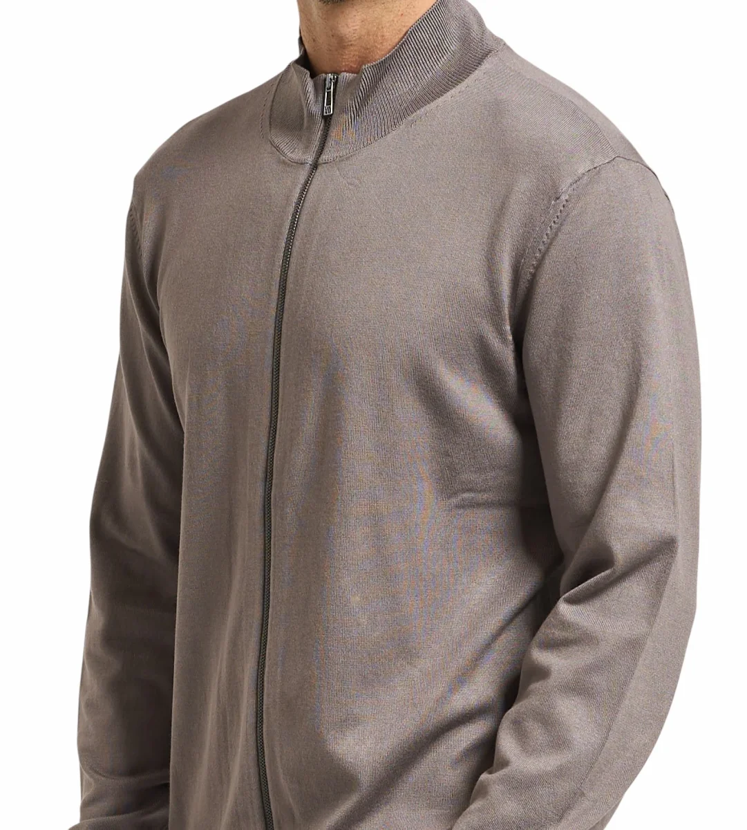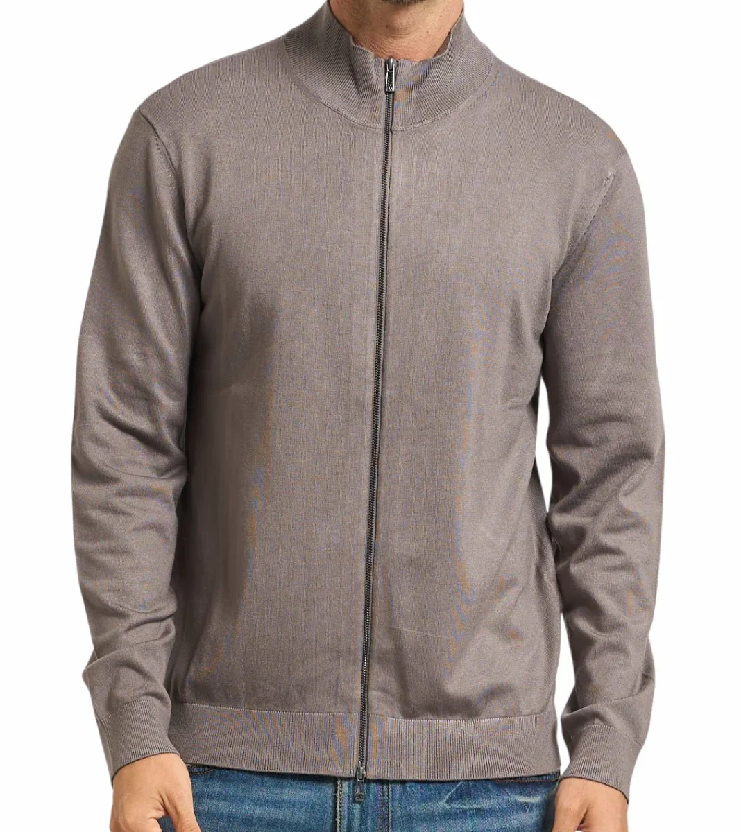 Cardigan uomo grigio in viscosa, dal design classico e raffinato, perfetto per l’uso quotidiano e le mezze stagioni. Cratterizzato da un design in maglia con chiusura frontale con zip a doppio cursore, collo alto a coste, maniche lunghe, con polsini e fondo a coste.