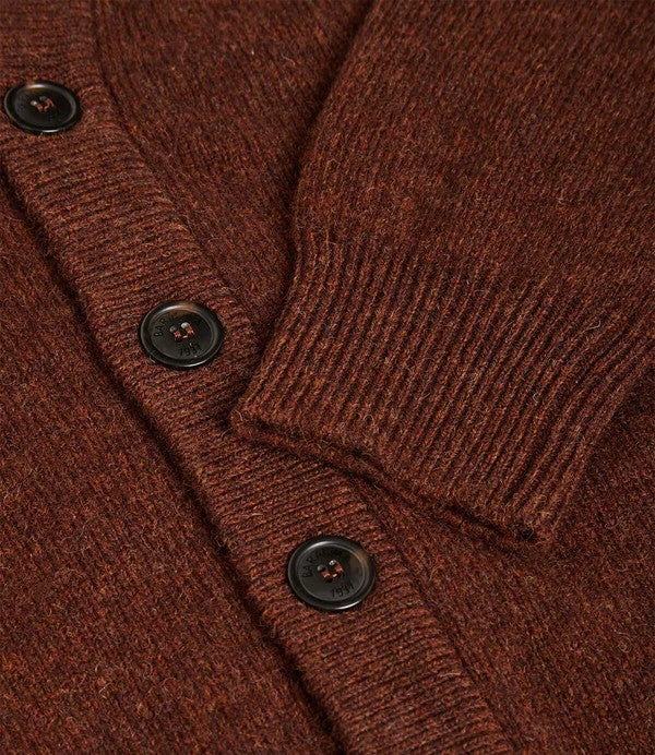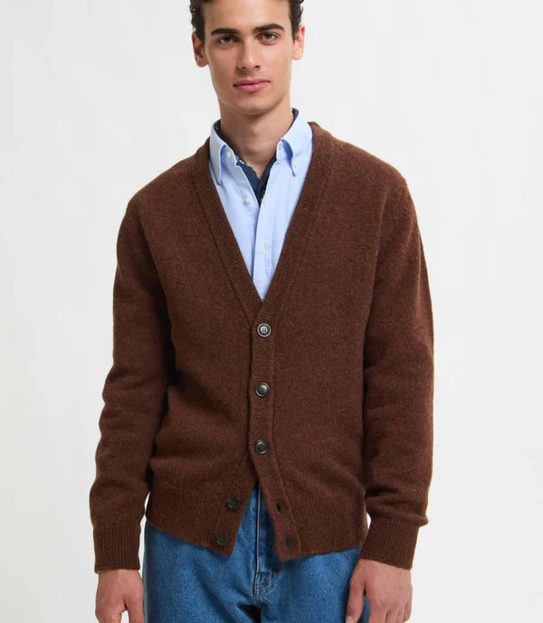 Cardigan uomo marrone in lana Shetland, realizzato in 100% lana vergine. Un capo che interpreta con discrezione lo stile britannico, impreziosito dal classico scollo a V e dalla chiusura frontale con bottoni logati, perfetto equilibrio tra tradizione e modernitร . Il logo Baracuta ricamato tono su tono sul petto dona un accento di heritage sobrio ma distintivo. La sua vestibilitร regular, pensata per il massimo comfort, permette di indossare il capo senza problemi sia sopra una camicia che sotto alla tua giacca Baracuta preferita. Un capo essenziale e versatile, capace di adattarsi a ogni occasione. Il fascino rilassato del cardigan, elevato a icona di stile.