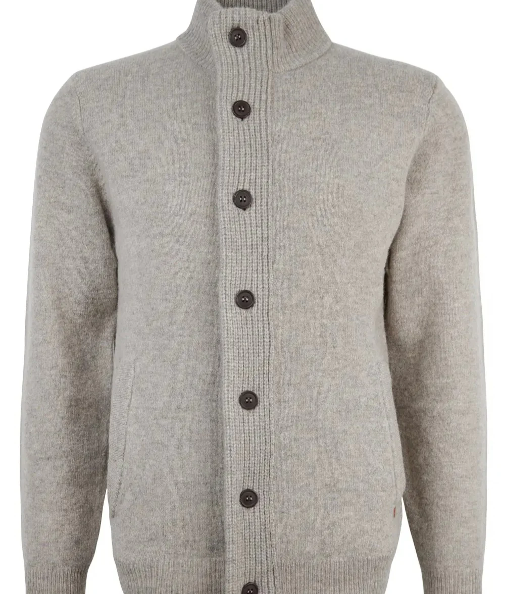 Maglione uomo tortora, lavorato a maglia in pura lana d’agnello, presenta toppe in Alcantara sui gomiti e un ricamo esclusivo sul petto, abbottonatura sul davanti con zip e bottoni a contrasto e etichetta in pelle marrone con logo sull’orlo sinistro. La vestibilitร classica lo rende facile da indossare sopra camicie e t-shirt.