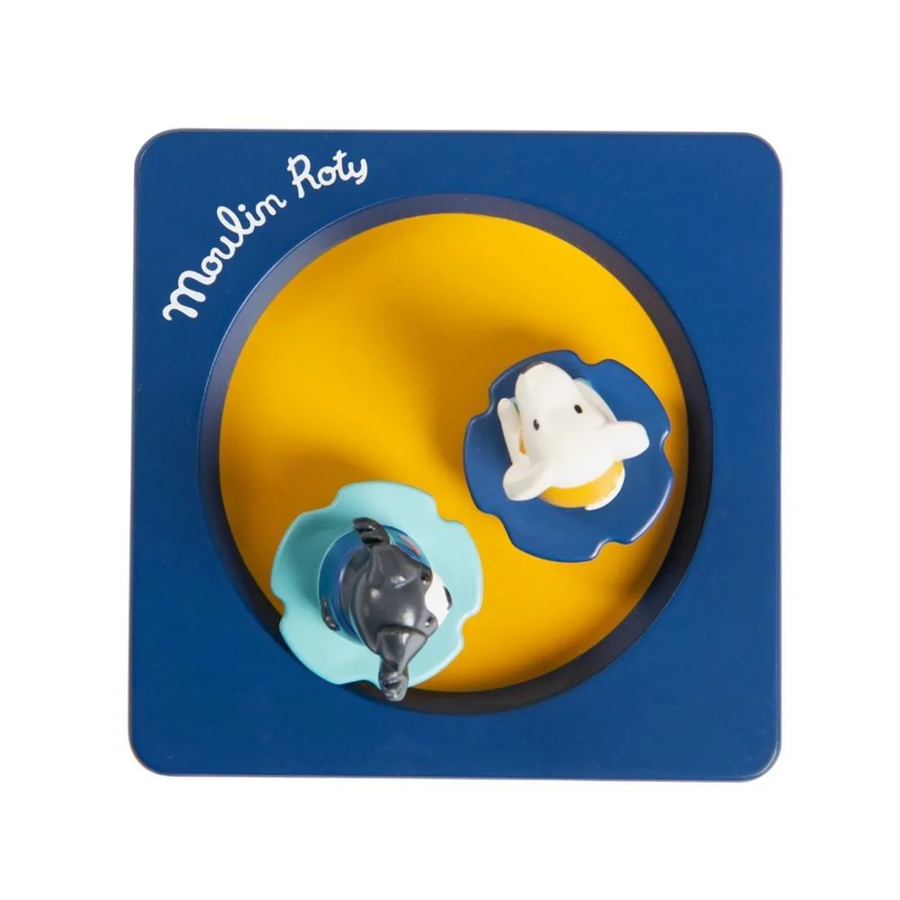 Puce et Pilou girano e ballano al ritmo della melodia di ”un weekend a Roma” di Etienne Daho per cullare e far addormentare il vostro bambino. Il meccanismo รจ attivato da una piccola chiave situata sotto la scatola e il tuo bambino ammirerร  le due statuette in resina che iniziano a girare in pista!Dimensioni: 12 x 12 cm.