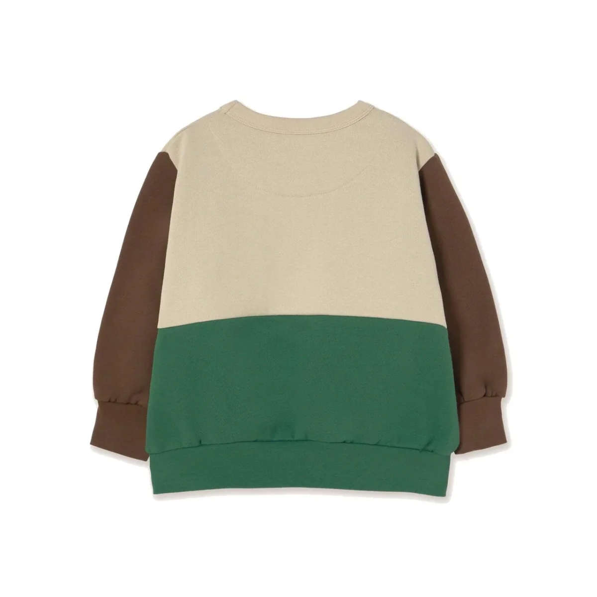 This color-block sweatshirt combines comfort, style, and sustainability. Crafted from 100% organic cotton, it features a relaxed silhouette with round neck and rib trims. It offers both styles and comfort with a clear focus on quality.