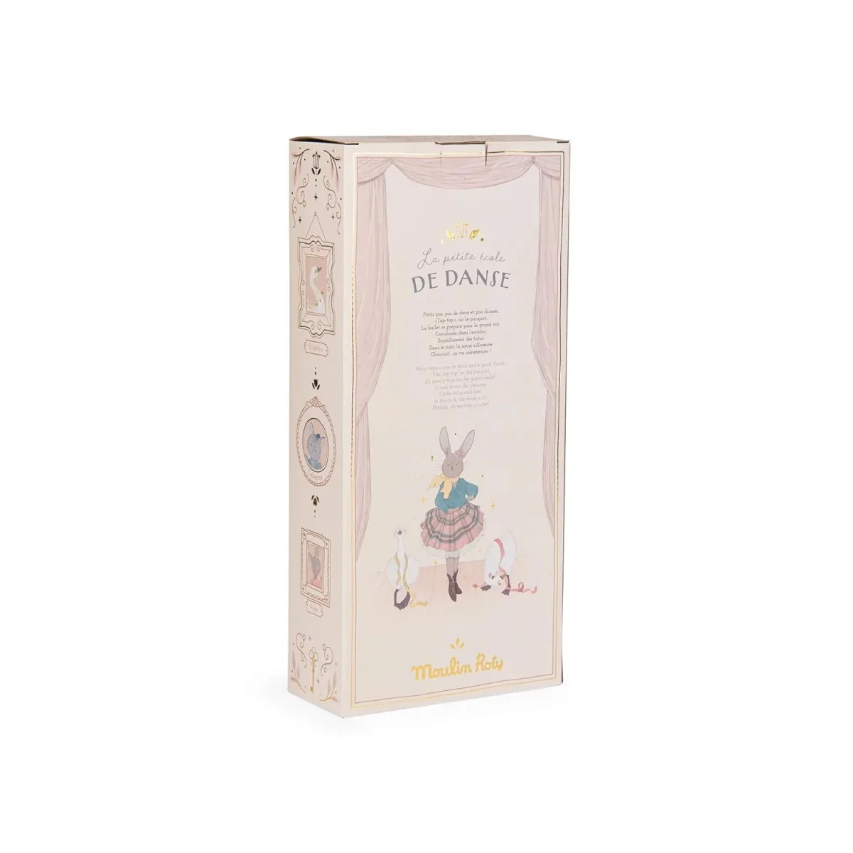 Coniglio ballerina Victorine, elegantissima, con un morbido viso ricamato e le guance delicatamente incipriate, vestita con il suo abito a scacchi e tulle di paillettes. L’amica ideale per condividere momenti magici, facile da afferrare con le manine, diventerร il compagno di giochi preferito delle piccole ballerine in erba.