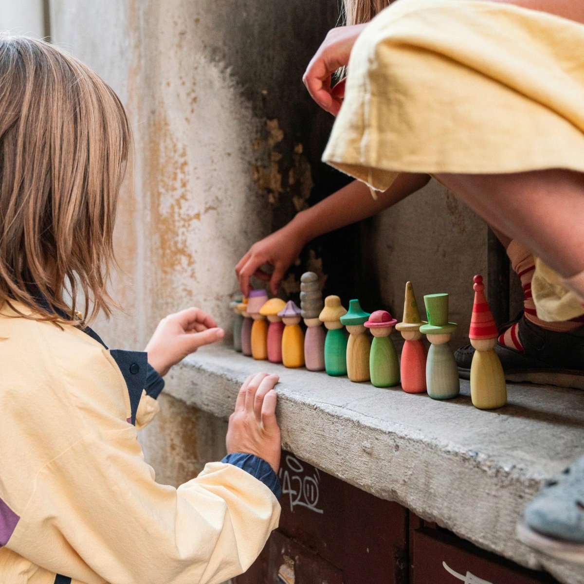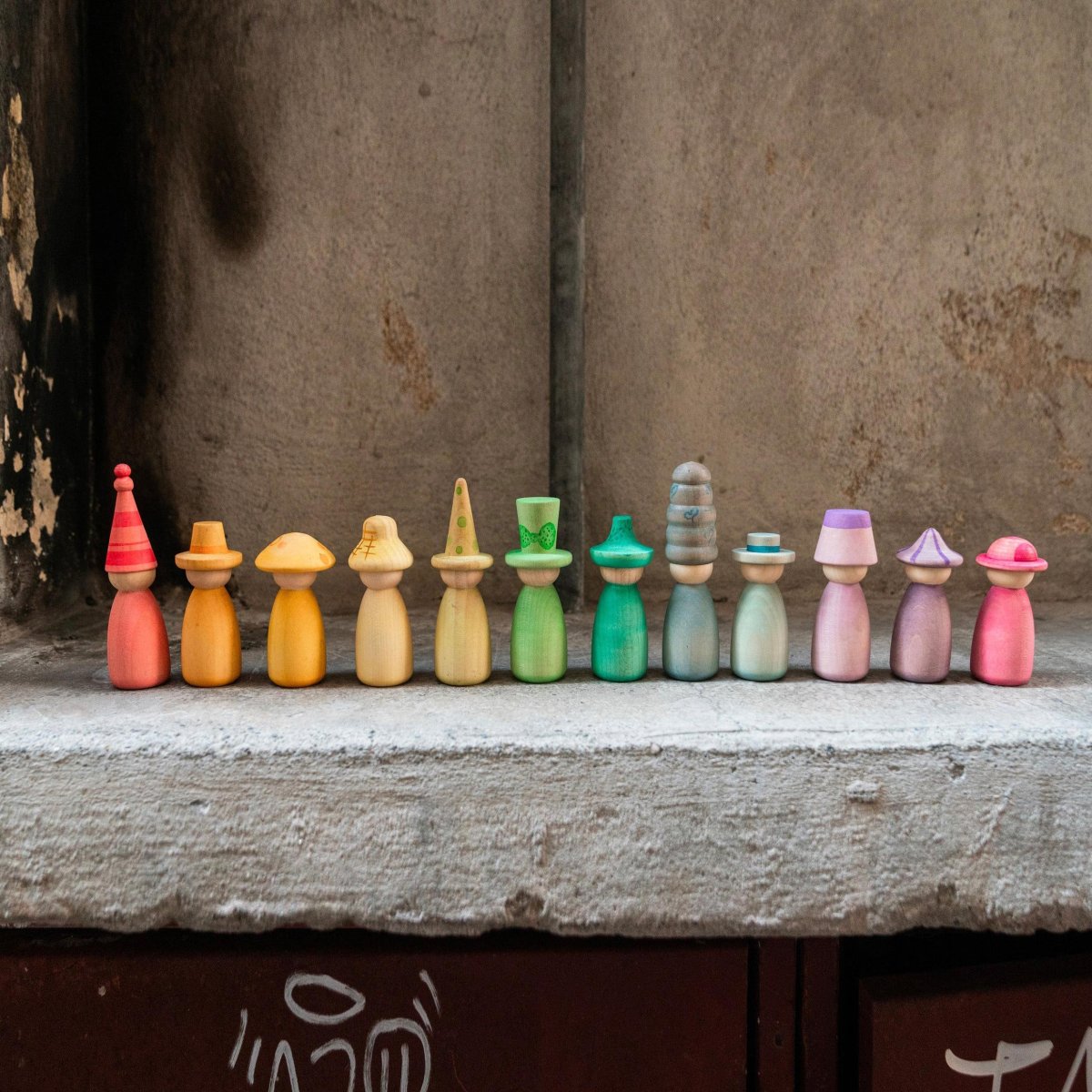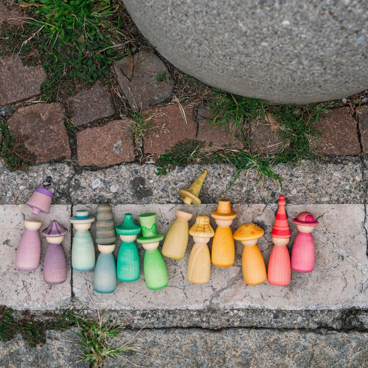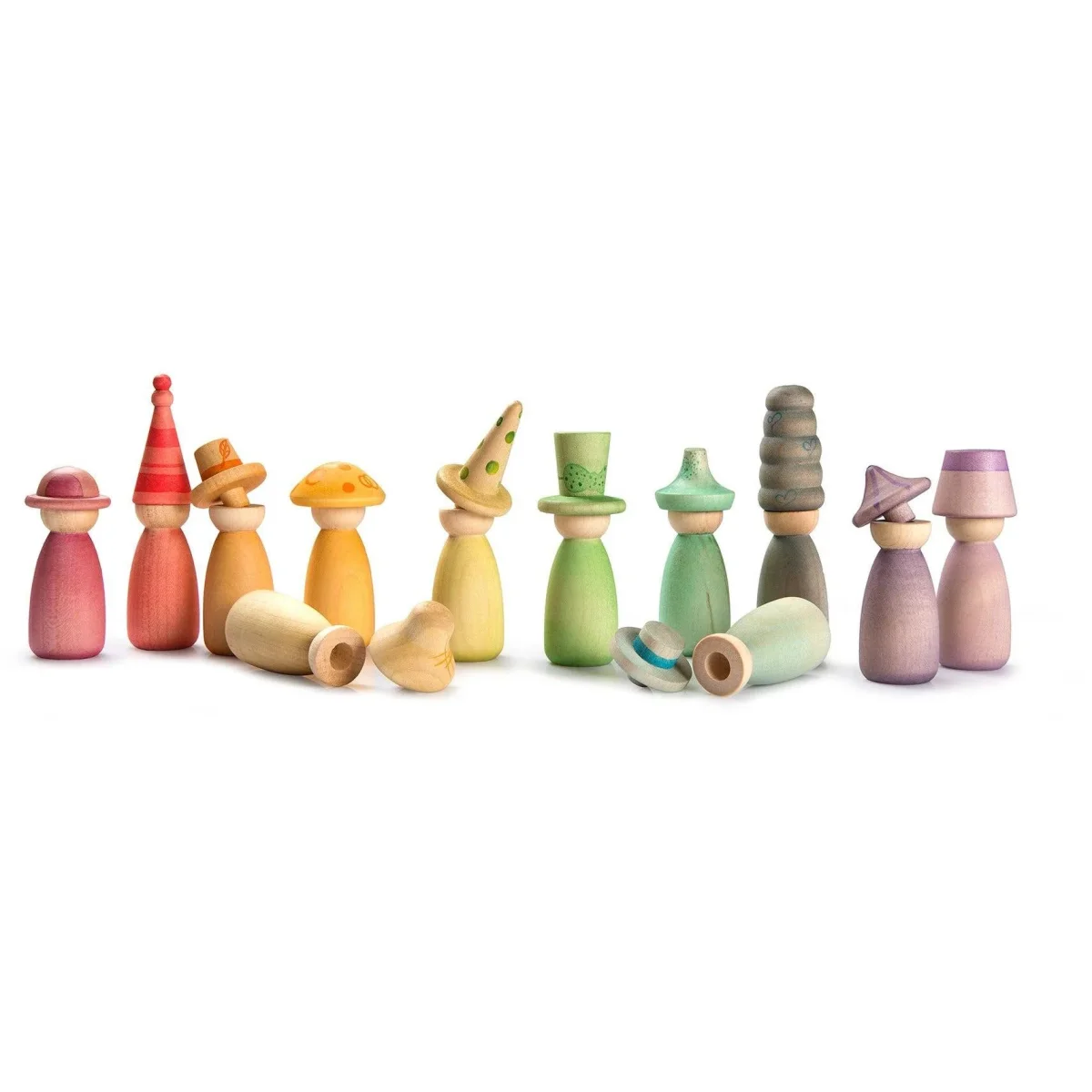 Il set contiene 12 Nins colorati a mano nei 12 colori distintivi dell’arcobaleno con cappelli e corpi intercambiabili per portare ancora piรน combinazioni di possibilitร  colorate a ogni attivitร  di gioco a tempo indeterminato. Il set consente ai bambini di navigare da soli attraverso tutte le loro fasi di apprendimento. รˆ una grande aggiunta al gioco simbolico, alla narrazione e ai piccoli mondi, fino all’impilamento, all’adattamento, all’abbinamento dei colori e… il cielo รจ l’unico limite!