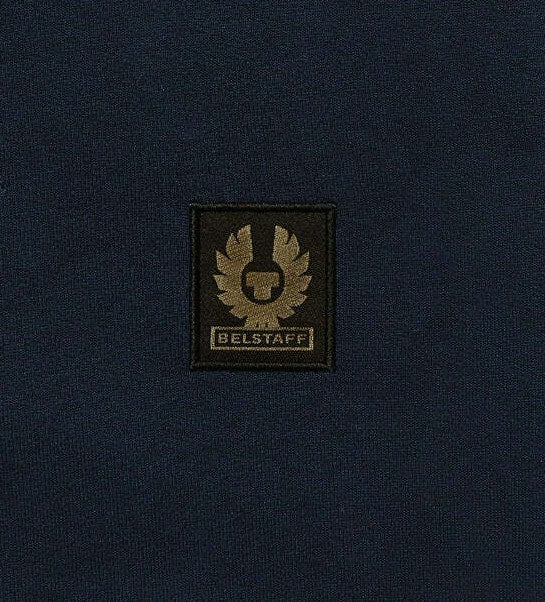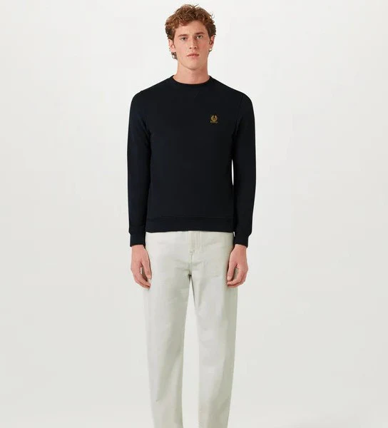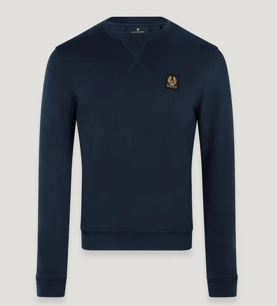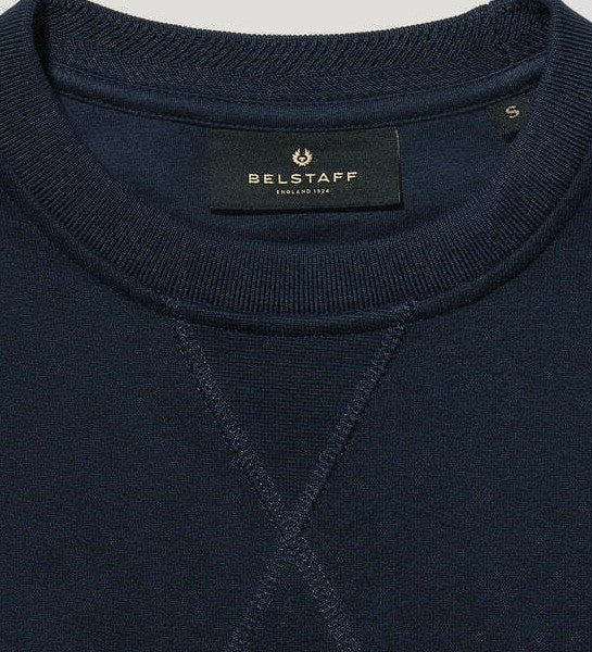 Felpa blu uomo in cotone, realizzata in morbido jersey di cotone, girocollo e maniche lunghe, con dettaglio cucitura a V sul colletto; polsini, bordo e colletto a coste.