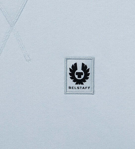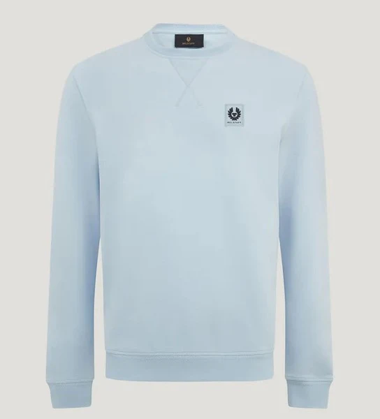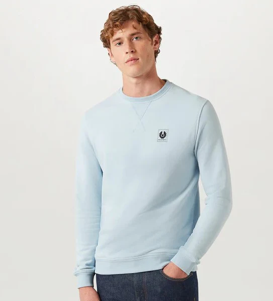 Felpa celeste uomo in cotone, realizzata in morbido jersey di cotone, girocollo e maniche lunghe, con dettaglio cucitura a V sul colletto; polsini, bordo e colletto a coste.
