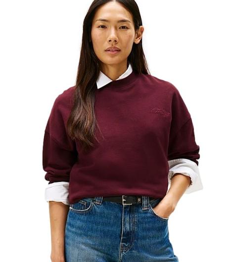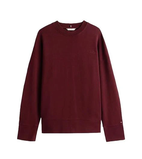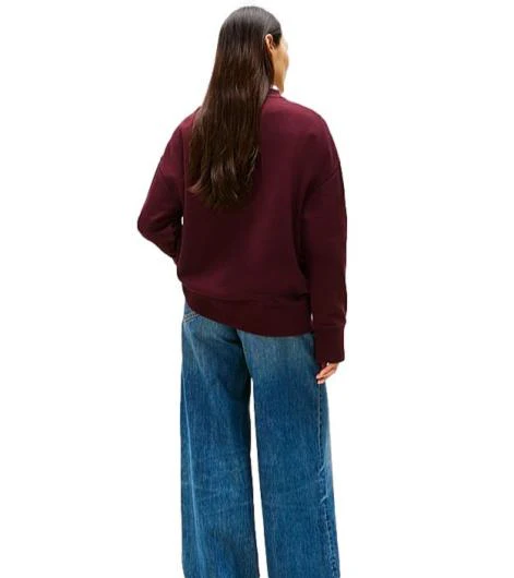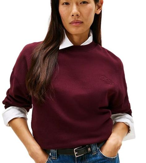 Felpa donna bordeaux realizzata in morbida spugna di cotone, dallo stile sporty-chic con taglio comodo e logo ricamato sul petto. Vestibilitร rilassata.