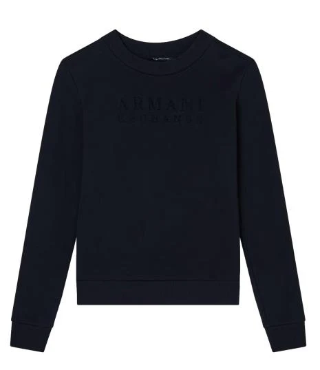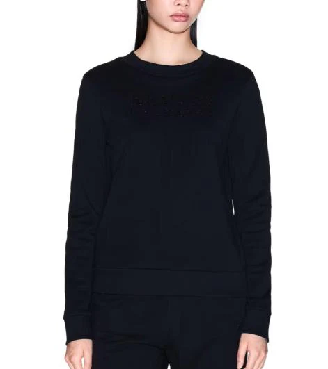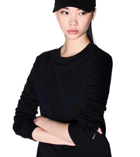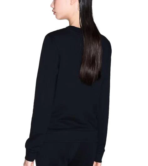 Felpa donna nera realizzata in cotone, dalla linea semplice ed essenziale, caratterizzata dalla scritta con logo sul davanti tono su tono.