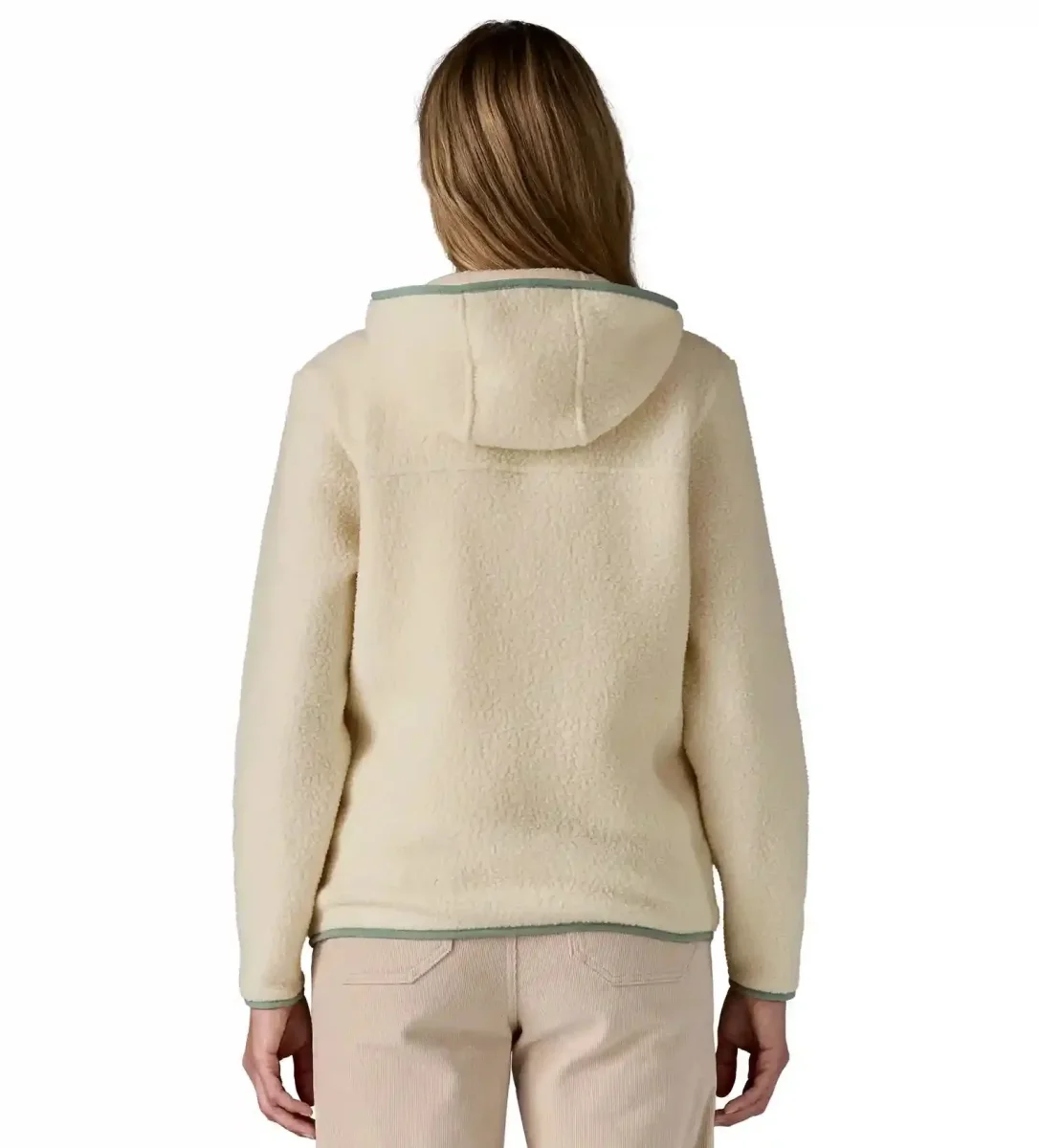 Felpa donna panna realizzata in pile di montone sintetico double-face riciclato al 100%, reinterpreta in chiave moderna il pile vintage. Presenta un design retrรฒ con inserti a contrasto, pratiche tasche con cerniera e collo alto integrato nel cappuccio che garantiscono comfort ottimale per uscite in montagna e in cittร . Il bordo elastico intorno al cappuccio, ai polsini e all’orlo rinforza l’isolamento termico, aggiungendo al contempo un tocco di eleganza.