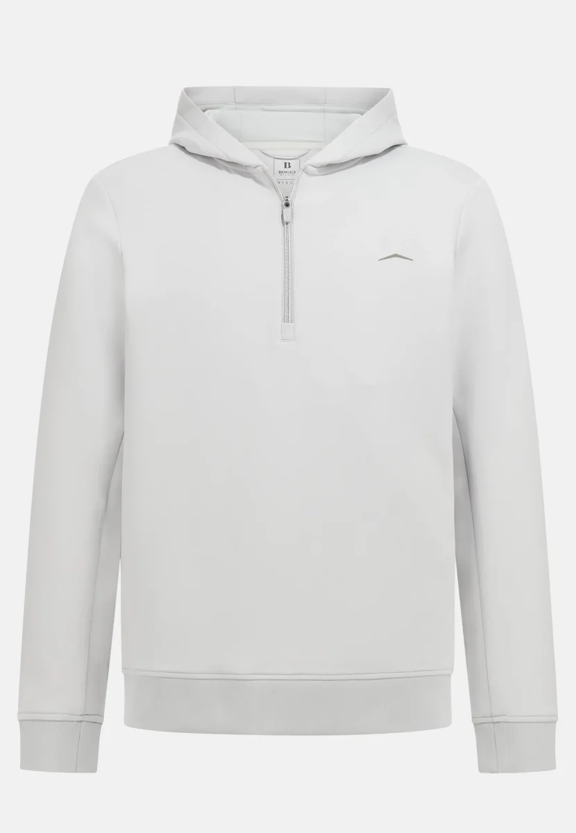 Pensata per il comfort e la flessibilità, questa felpa con mezza zip è realizzata in cotone elasticizzato e poliestere, con zip personalizzata e nastro B Tech inciso al laser sul cappuccio per un tocco moderno.