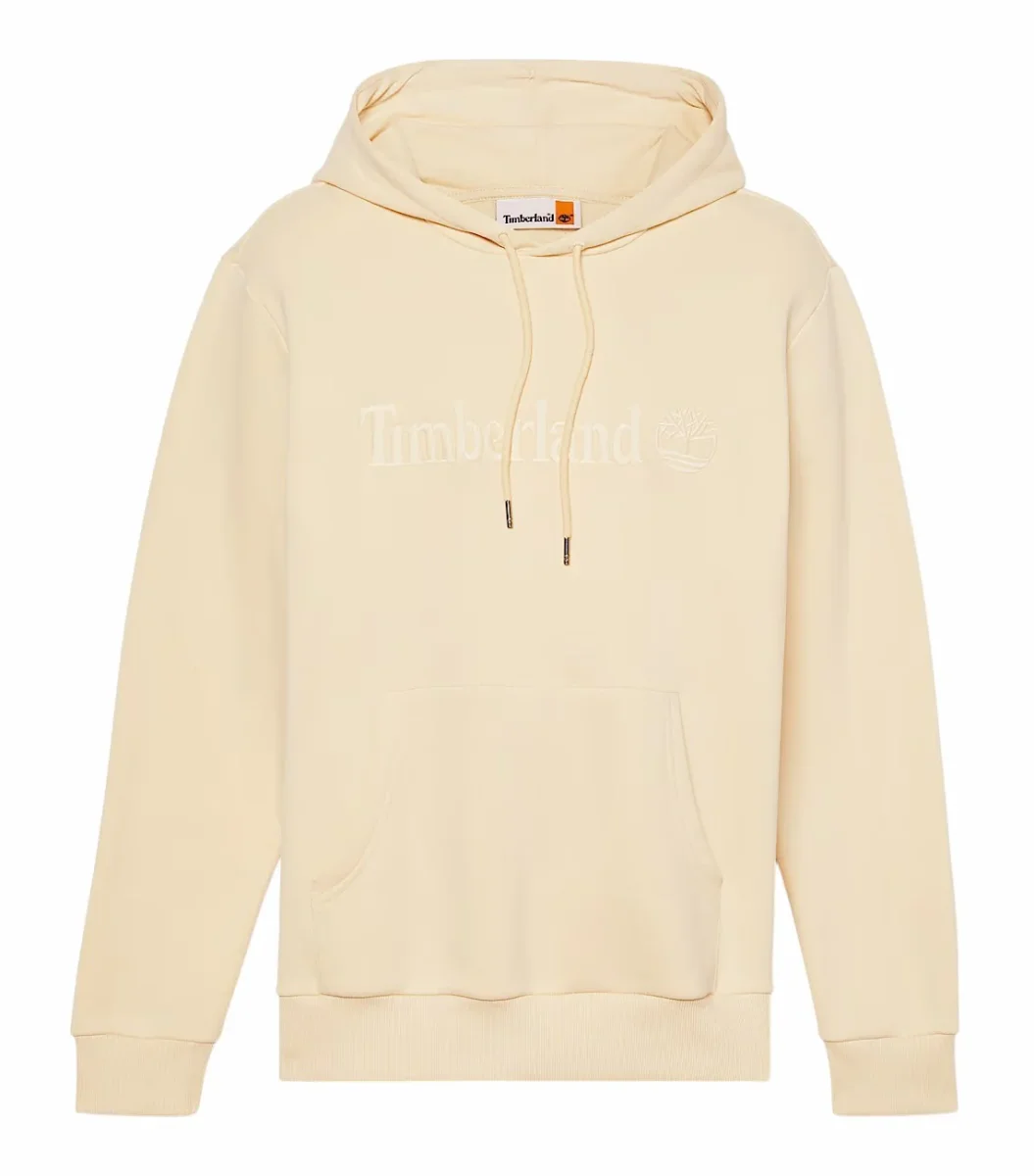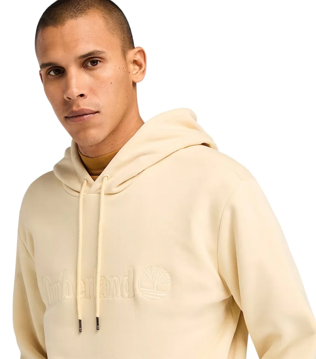 Felpa uomo beige realizzata in misto cotone, con cappuccio per tutti i giorni si distingue per il taglio pulito e dritto e il retro morbido e spazzolato. Presenta il logo ricamato e una classica tasca a marsupio.