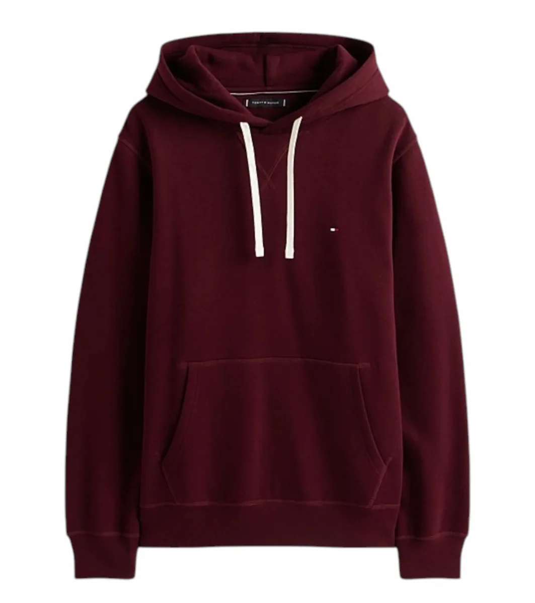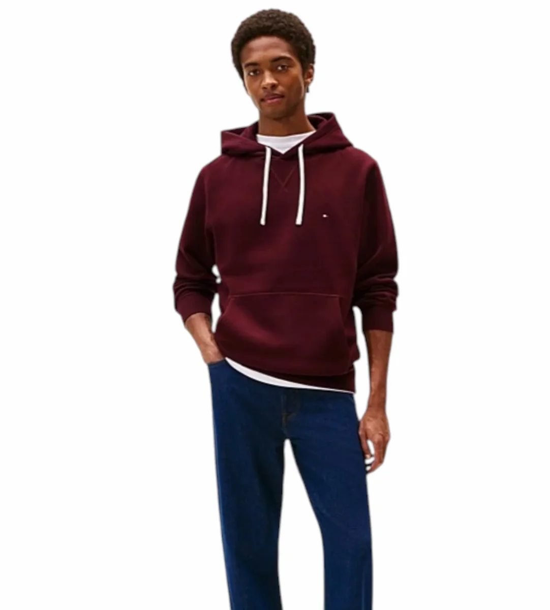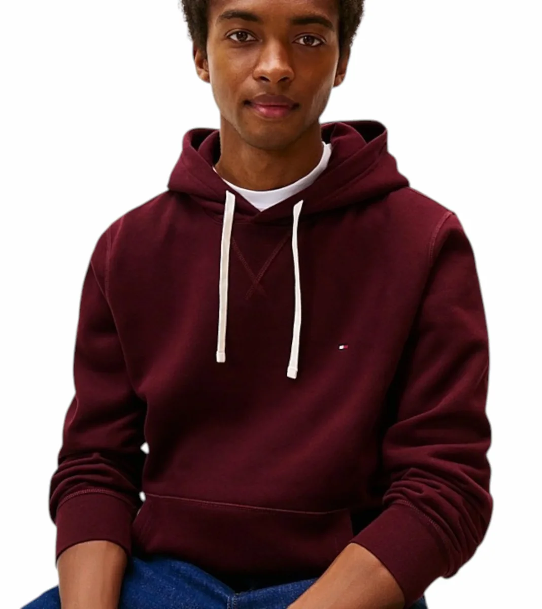 Felpa uomo burgundy con cappuccio, realizzata in morbido tessuto felpato di misto cotone manopesca, con collo con cappuccio e lacci a contrasto, tasca a marsupio, fondo e polsini a coste, iconico dettaglio all’interno del collo e bandierina ricamata sul petto. Vestibilitร regolare.