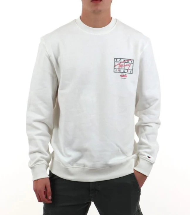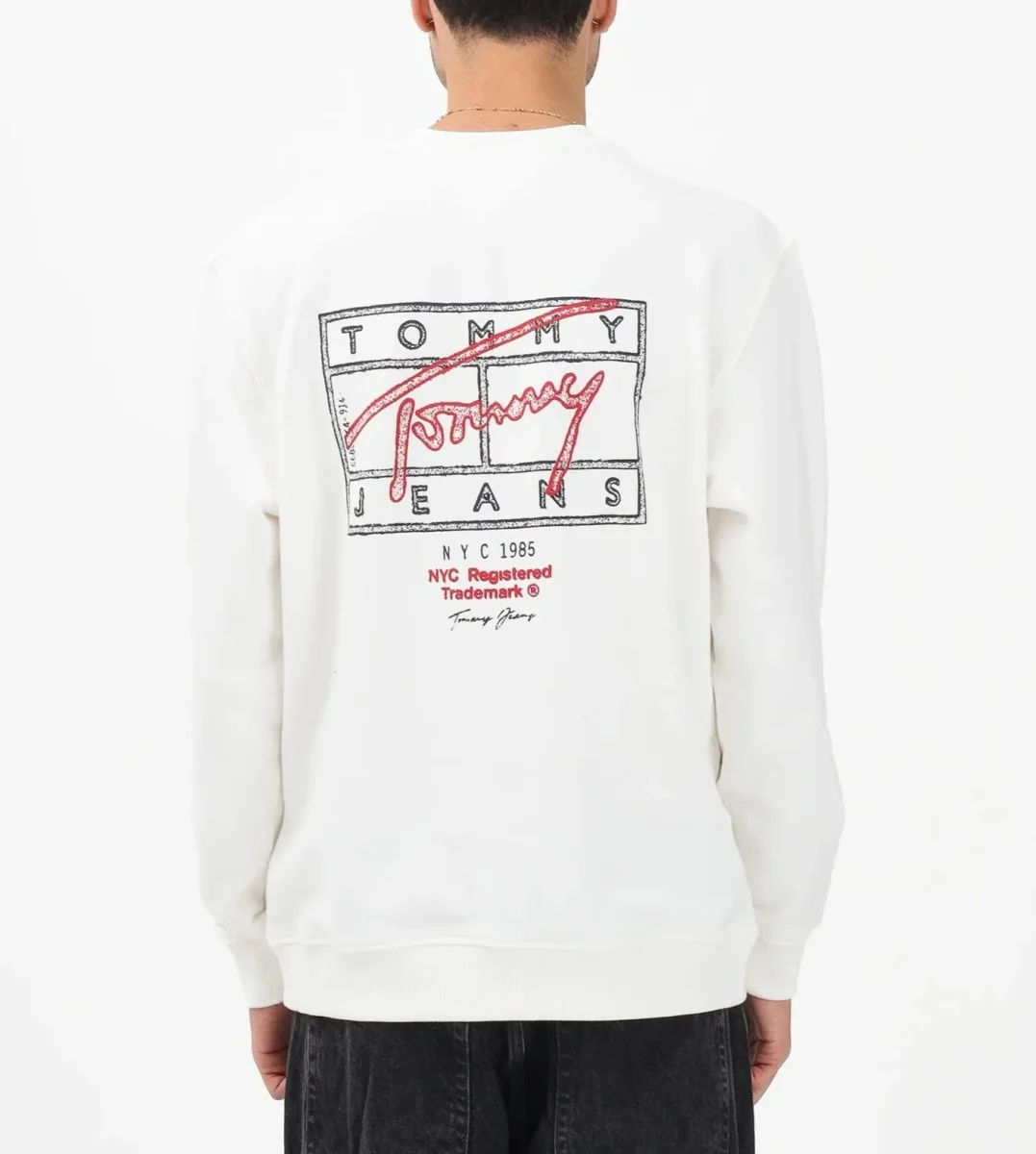 Felpa uomo ecru’ in cotone, modello girocollo con logo grafico effetto spray sul petto e dietro la schiena.