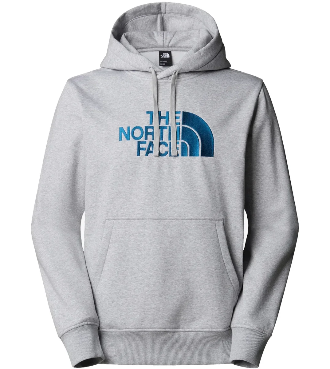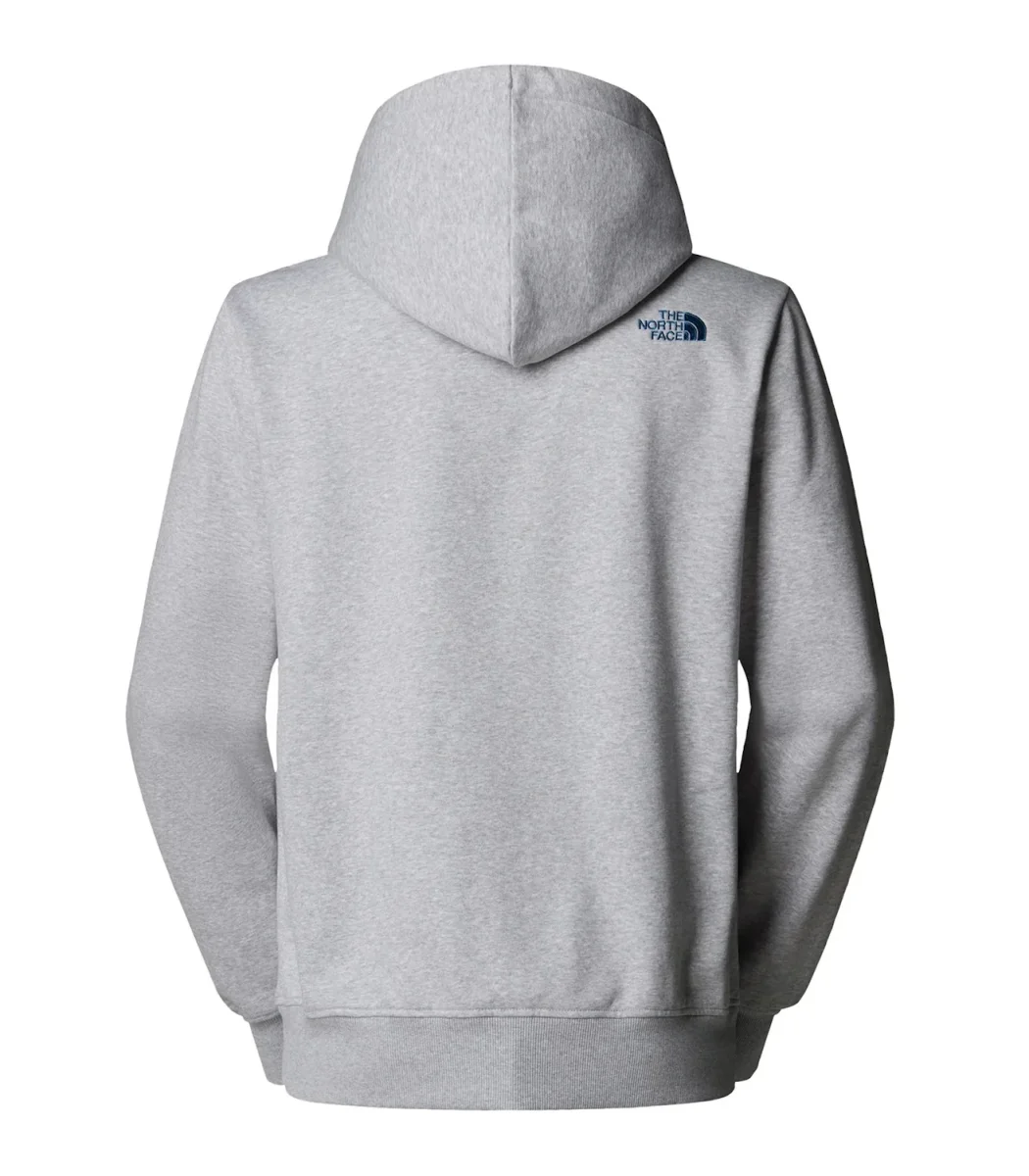 Felpa uomo grigio in cotone felpato con cappuccio dalla vestibilitร regular. Presenta tasca a marsupio e il logo grande ricamato sul davanti in blu, e in piccolo sulla schiena, polsini e orlo a coste, cappuccio con coulisse.