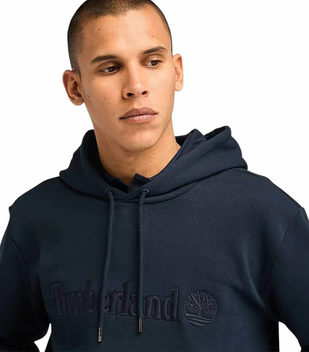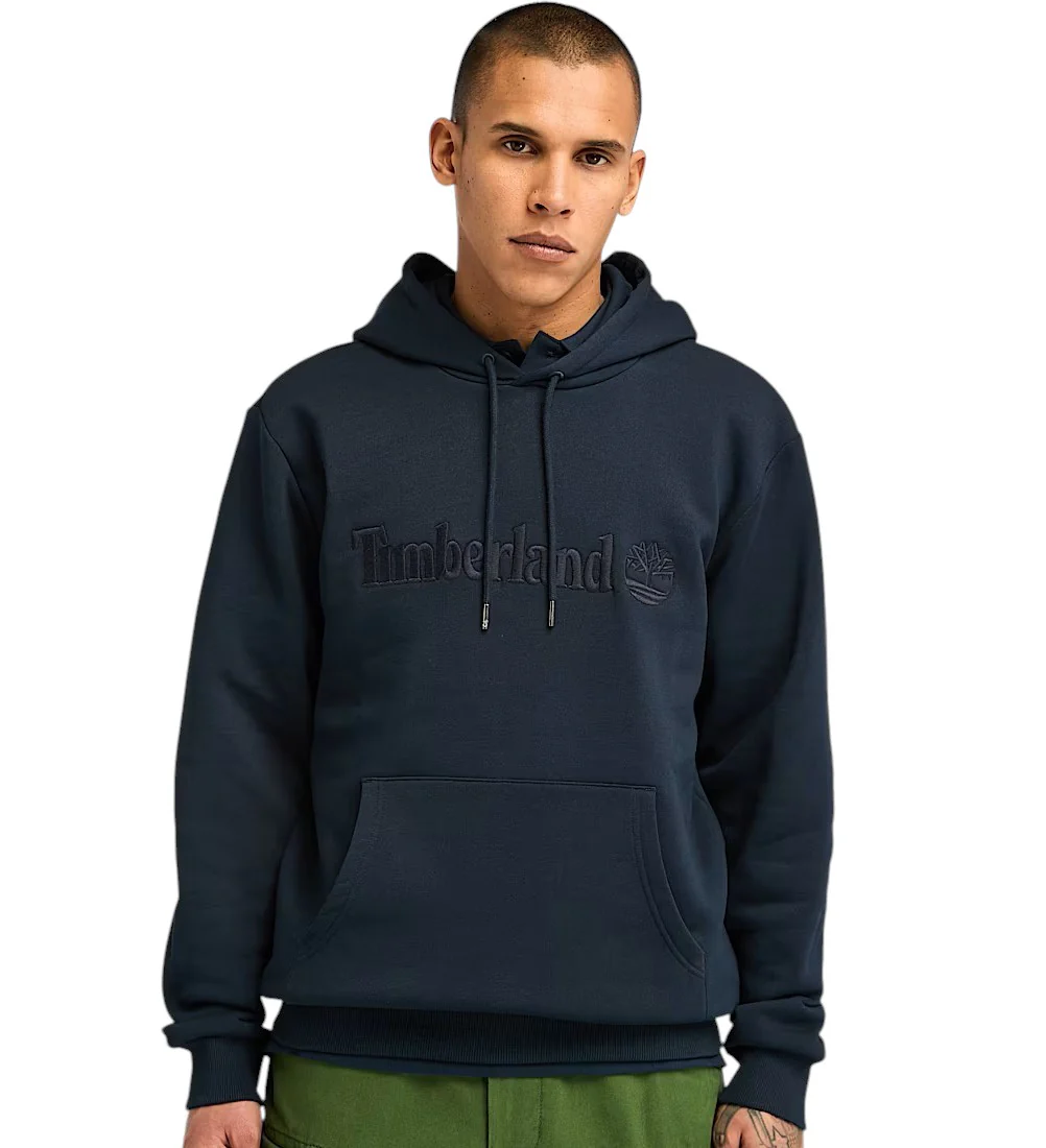 Felpa uomo navy realizzata in misto cotone, con cappuccio per tutti i giorni si distingue per il taglio pulito e dritto e il retro morbido e spazzolato. Presenta il logo ricamato e una classica tasca a marsupio.