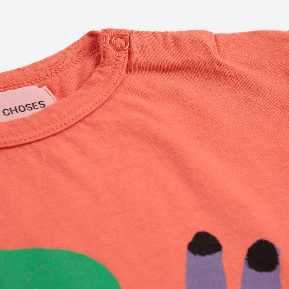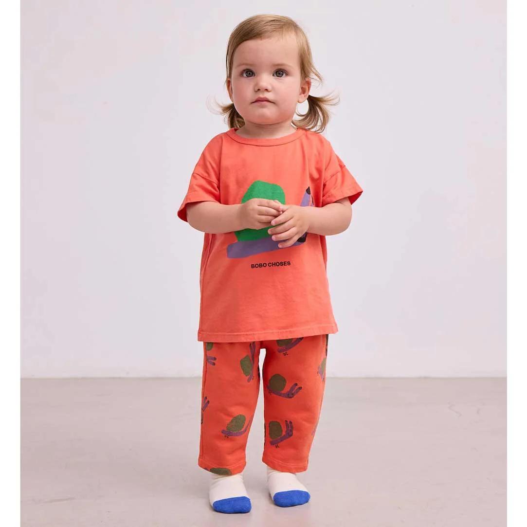 Bold and lively, this red t-shirt captures the spirit of exploration. Made from 100% organic cotton, it feels soft and airy, ideal for all-day play. Featuring short sleeves, a dropped shoulder, and a loose fit, its shoulder snap fastening makes dressing simple and easy. Lovingly crafted in Spain with respect for people and the planet.