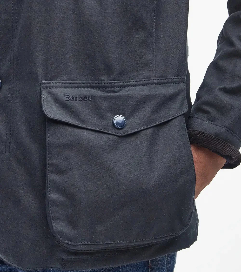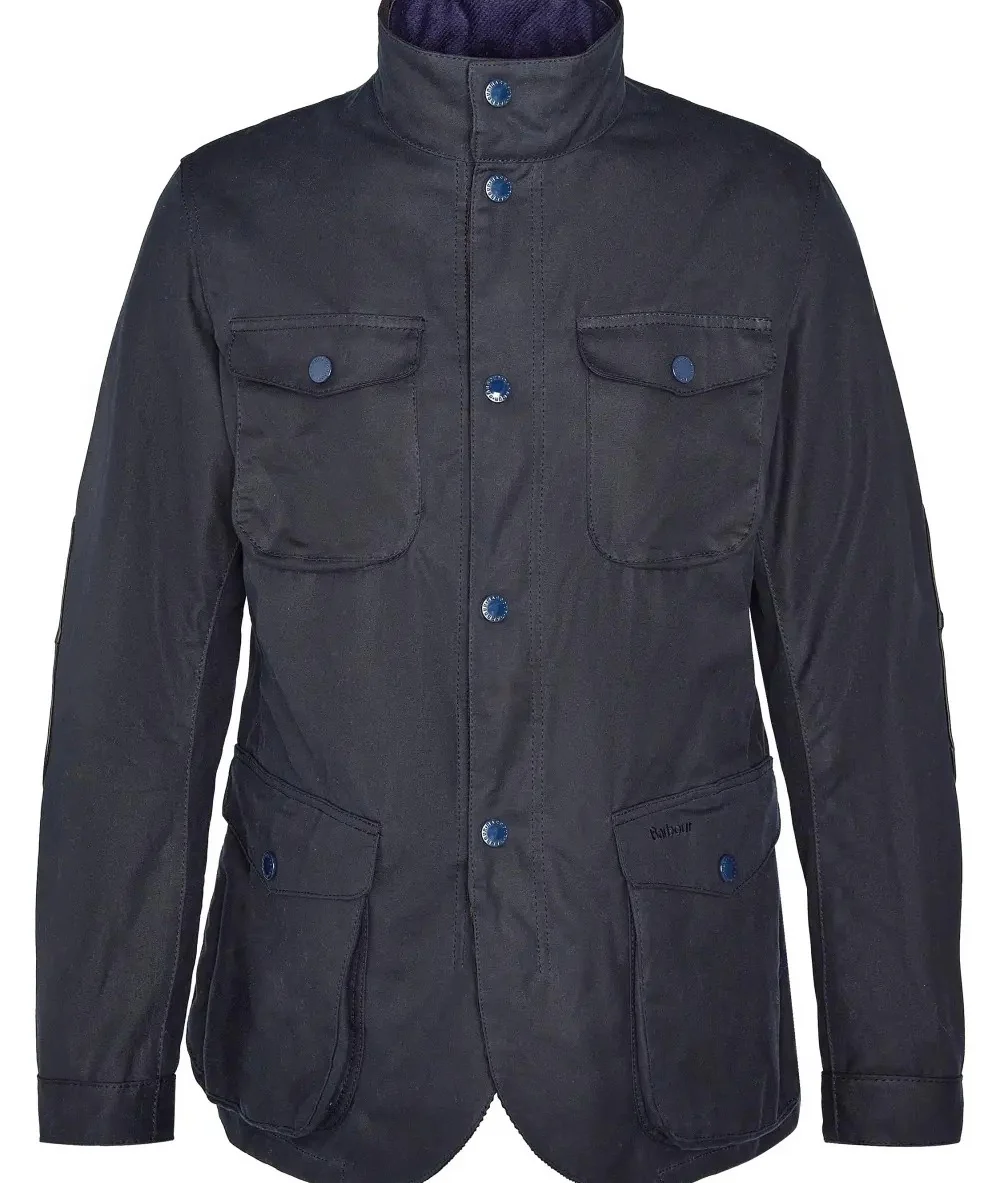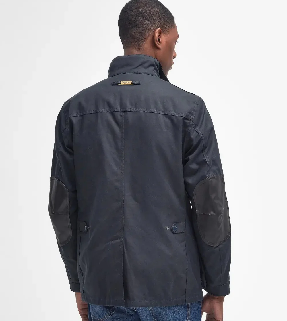 Giacca uomo blu navy elegante e raffinata, รจ un capo robusto, dal taglio maschile e rilassato, realizzato in cotone cerato, che offre una solida protezione dalle intemperie con una finitura opaca effetto camoscio. Il gilet trapuntato integrato crea un look outdoor e offre un ulteriore strato di calore, chiudendosi fino al collo alto con una zip con logo. La giacca esterna aggiunge ulteriore praticitร  con robuste chiusure a bottone e quattro ampie tasche, oltre a dettagli distintivi come toppe in pelle sui gomiti e rivestimenti in velluto a coste. La lussuosa fodera aggiunge un tocco di eleganza e raffinatezza a questa robusta giacca invernale.