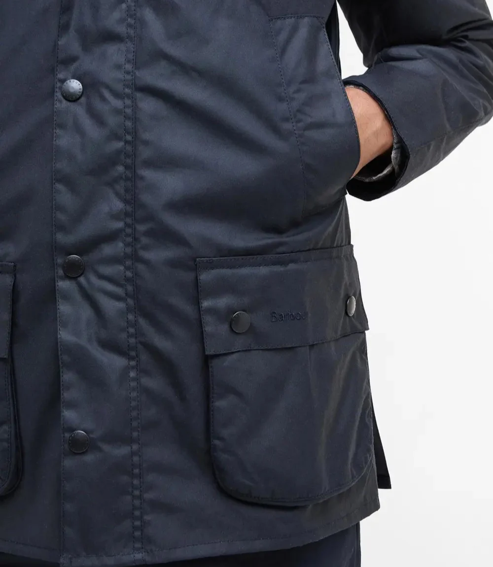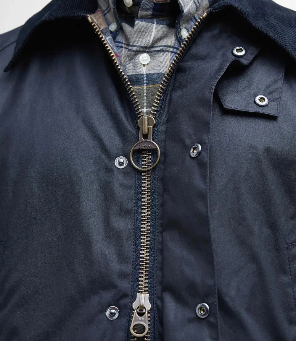 Giacca invernale da uomo blu navy pratica ed elegante. Realizzata in cotone cerato, con finitura opaca e un tocco confortevole e vissuto. Leggermente sartoriale, ma che lascia comunque spazio per gli essenziali strati invernali, le caratteristiche classiche includono una patta antivento con robuste chiusure a bottone, un elegante collo a coste con cinturino sottogola, tasche scaldamani angolate e due ampie tasche a soffietto. Ispirato alla tradizione scozzese, l’iconico tartan rifinisce la fodera e le tasche interne, aggiungendo un’autenticitร inconfondibile. Questa giacca funzionale presenta una cerniera frontale interattiva ed รจ completamente compatibile con le fodere opzionali con cerniera di Barbour, rendendola incredibilmente versatile e ideale per l’uso quotidiano.